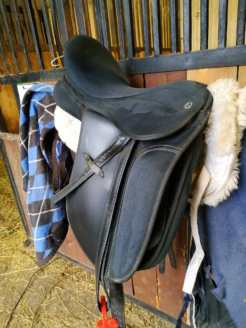 выездка, сменные ленчики, упоры на липучках, верх замша, размер 16.5 на высокую холку, среднюю спину ( черный ленчик).