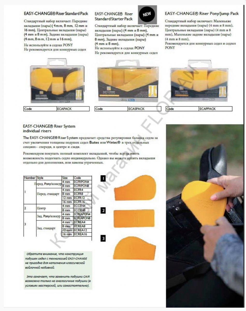EASY-CHANGE™ Riser System - система сменных вкладышей в полки седла для регулировки зазоров и поднятия передней/задней луки (комплект вкладышей приобретается отдельно)