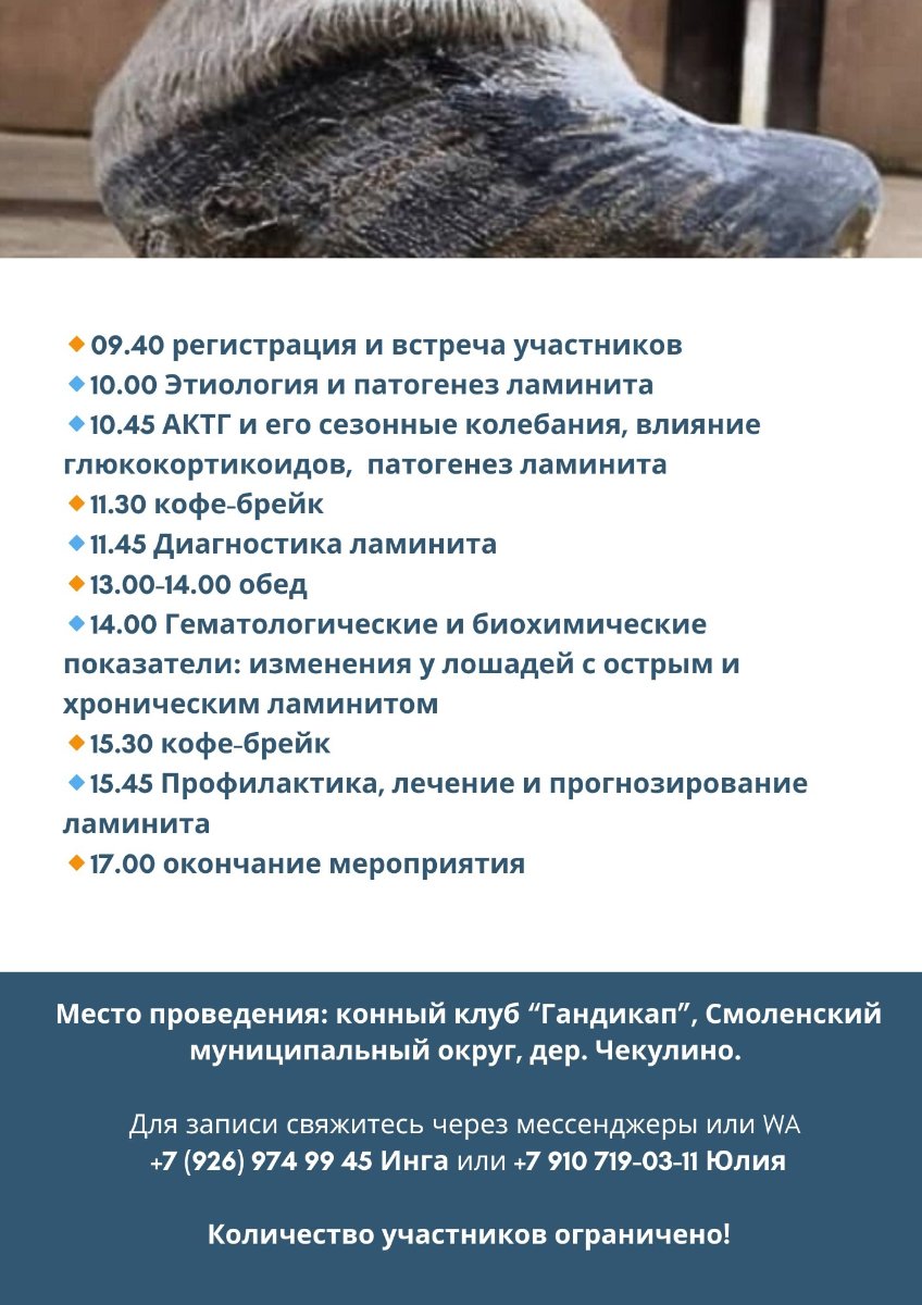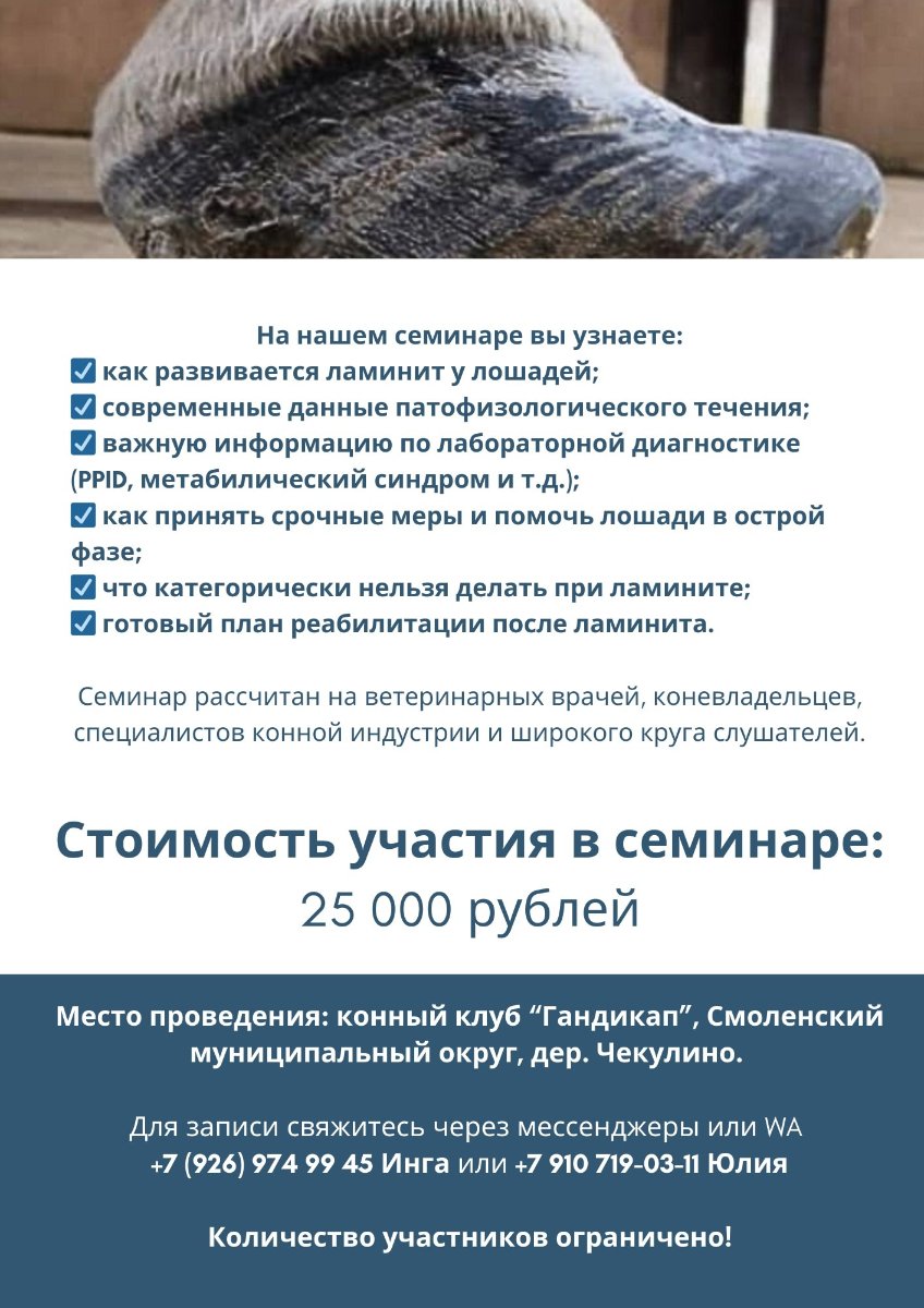 Семинар рассчитан на ветеринарных врачей, коневладельцев, специалистов конной индустрии и широкого круга слушателей.