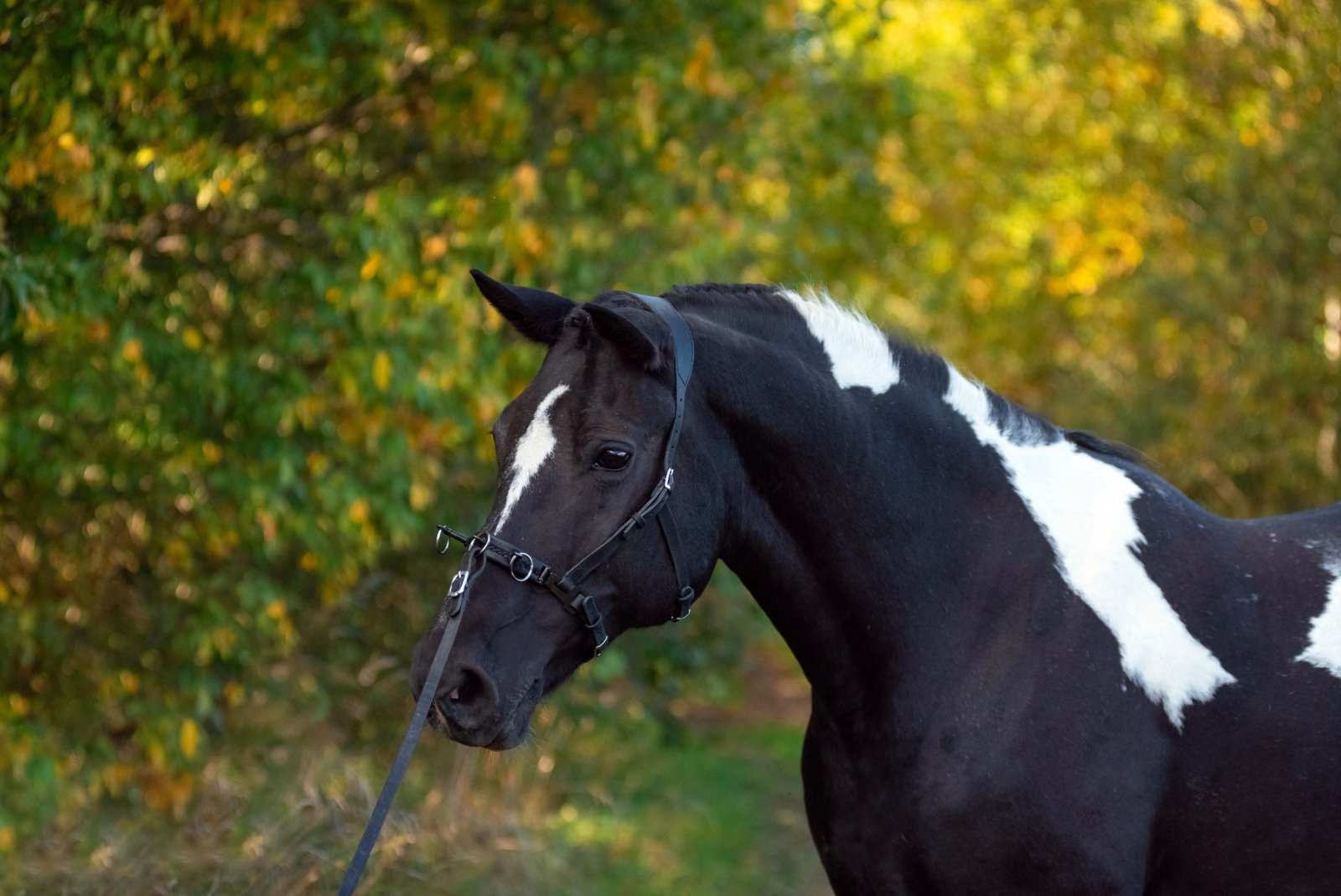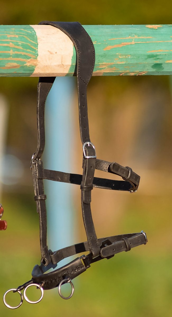 - Имеет анатомический затылочный ремень без подложки, чтобы возможно было использовать под или на уздечку, не создавая пирог за ушами.