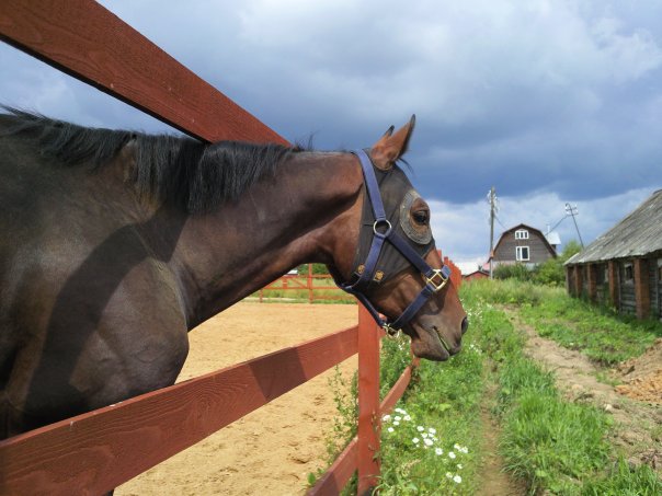 Так я начала целенаправленно каждый день просматривать объвления и другую информацию о нем. Оказалось, что у коня увеит. У коня моей подруги, который несколько месяцев стоял у меня, тоже было бельмо на глазу и он плохо видел, но это совсем не мешало ему достаточно удачно выступать на турнирах.