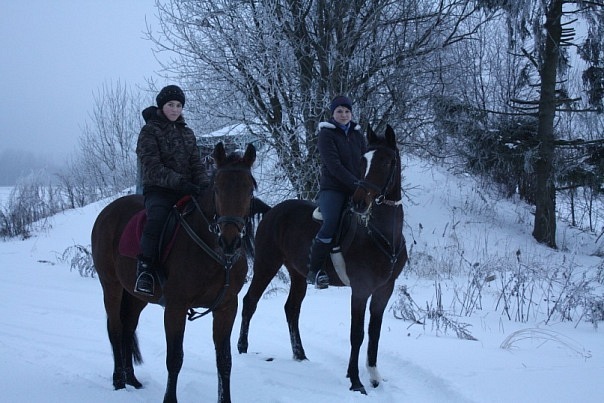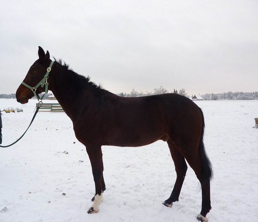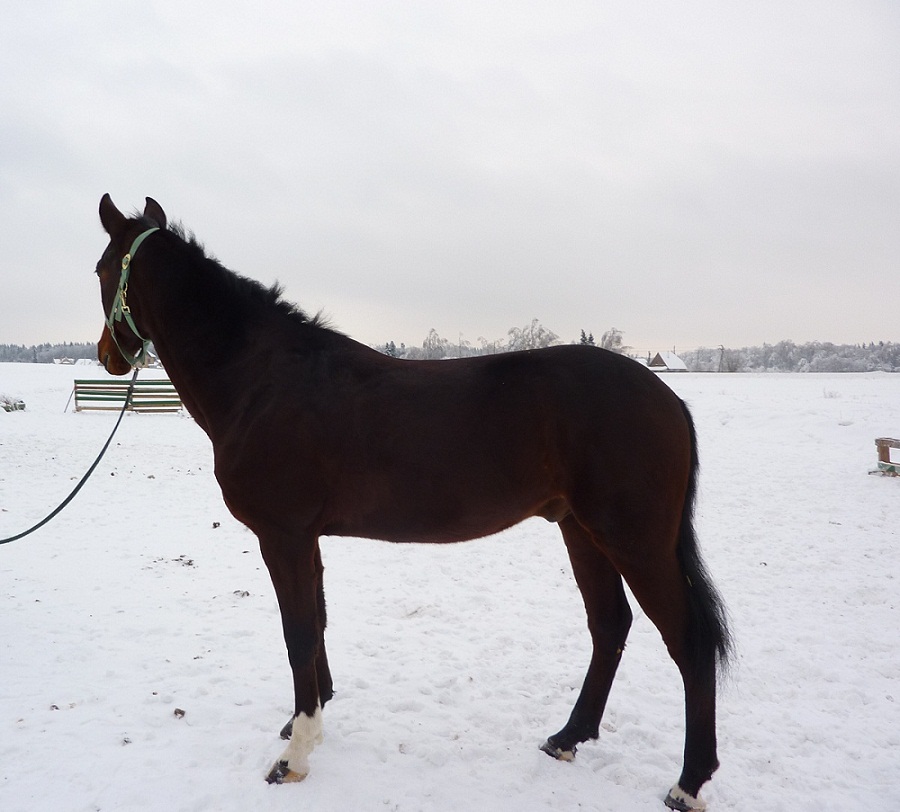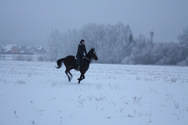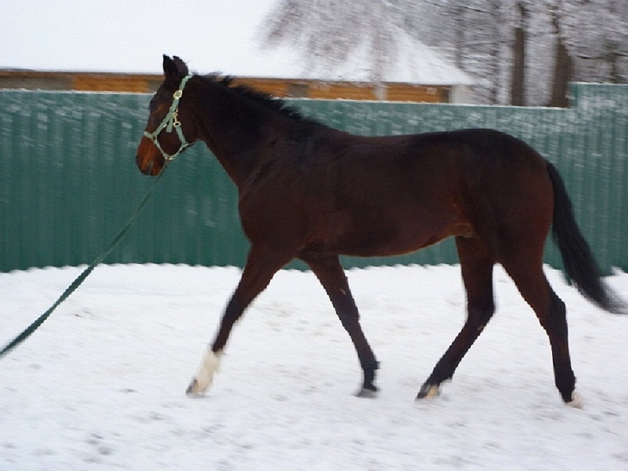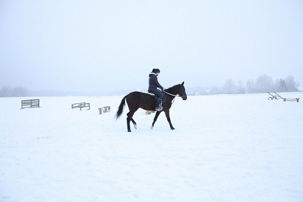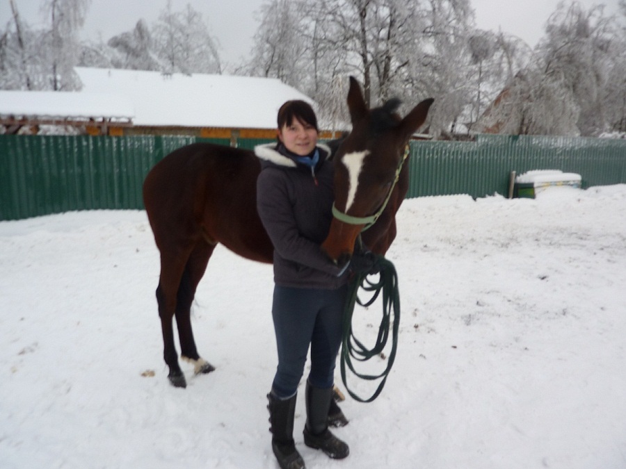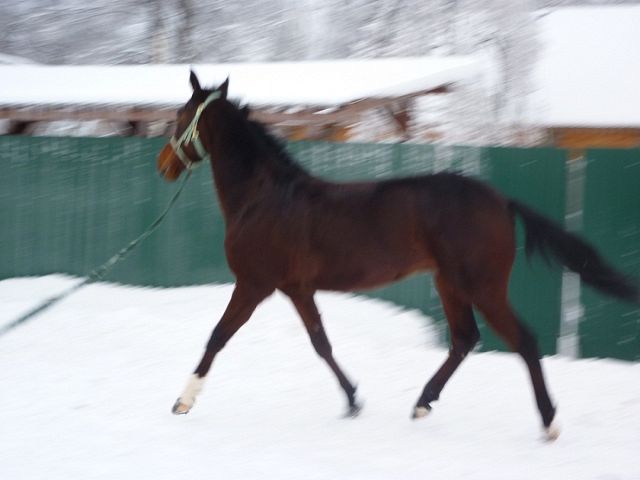 Перед выпадением снега Шамана поковали на перед на шипы, было очень чудно... он забавно таращился на свои ноги и прыгал от радости, когда комочки снега вылетали из-под копыт :)