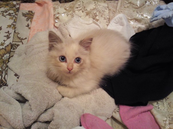 История появления Котэ. Прошлым летом уличная кошка родила 3-х котят. Двое были обычные, серо-коричневые и один (как потом выяснилось - одна) была белой, с голубыми глазками, кончики ушей, лапок и хвостика были коричневатыми... я сразу влюбилась в нее... ее брать были смылыми и часто появлялись на улице, а она все время пряталась и была самой маленькой. Я каждый день подкармливала всё семейство, к осени мальчишки были отданы в добрые руки, а беленькая поймана и приручена мной. Она прожила у нас год, и однажды мы уехали на свадьбу, на 2 дня... приехали, а малышка лежит на кресле... в глазах ужас... я хотела взять ее на руки, и ужас охватил и меня :shock: у нее не было задней лапы... как такое могло произойти в доме!? но к нам домой часто приходят родственники (одному из которых мягко говоря на все по барабану, любит только себя и свою машину :x ), которых мы очень просили не выпускать маленькое создание на улицу в наше отсутствие... видимо на улице она все-таки побывала... мы с мужем нераздумывая помчались с животным в ближайшую ветклинику... ведь травма была давняя, судя по характерному запаху от остатка конечности... там нам сказали, что похоже, что это не собаки, не машина, а как будто лапу отсекли... :( и надо до конца ее ампутировать, но они не делают таких операций... молодые работники этой лечебницы со слезами на глазах умоляли нас не усыплять животное, а твердили им, что нам нужна помощь, что мы хотим именно спасти беднягу... нас отправили в город в клинику, там нас без очереди приняли, и после осмотра врачом, были сделаны выводы - ампутация и что действительно около суток животное промучалось с болевым шоком :cry: