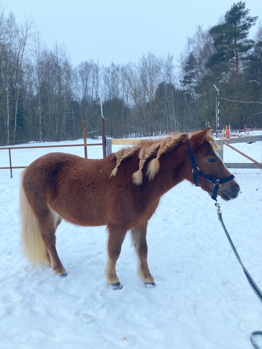 Отличная рабочая пони. Под ездящими детьми прыгает, под начинающими ходит и бегает на корде.