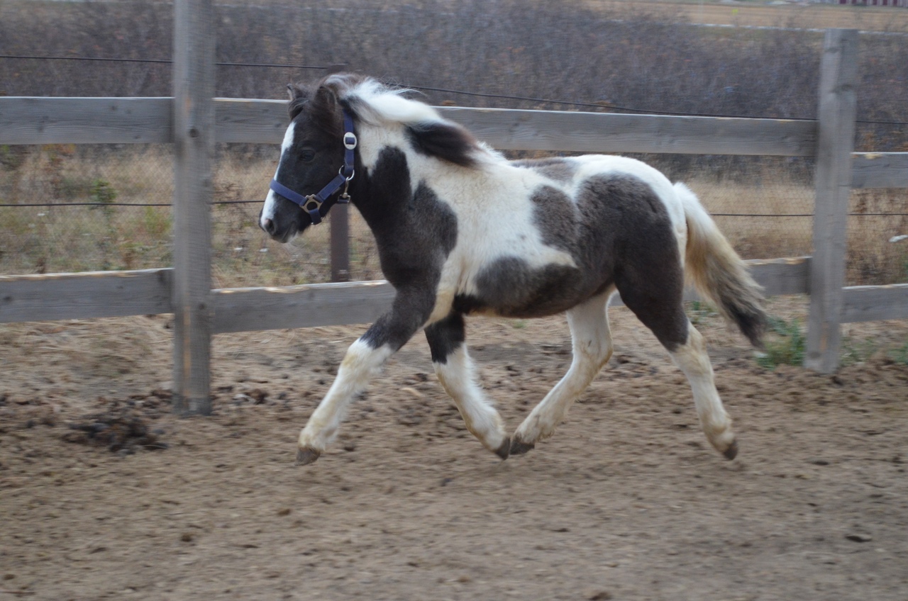 1.Серо-пегий, с яркой пегостью шетлендский жеребчик с голубо-кариеми глазками, ожидаемый рост до 112см в/х, сейчас 104 см. Активный, шустрый мальчик, хорошо идёт на контакт с детьми.