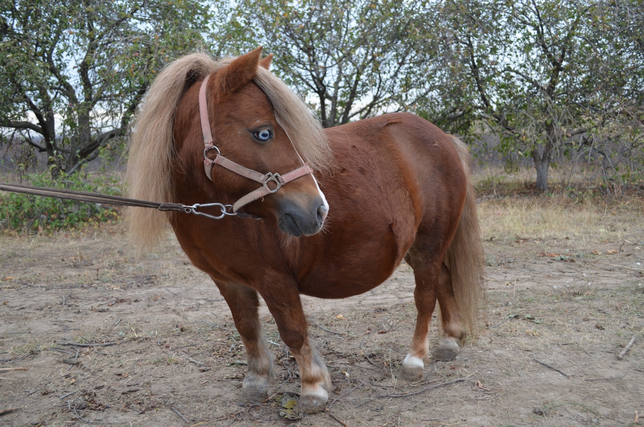 2.Оригинальная шетлендская кобыла, рыжая красавица с небесно-голубыми глазами, 2009 г.р, 93 см в/х. Хорошо грузится и транспортируется, пасётся на привязи, ранее работала в пони-клубе.Чипированна. Паспорт пони, ветеринарный паспорт.
