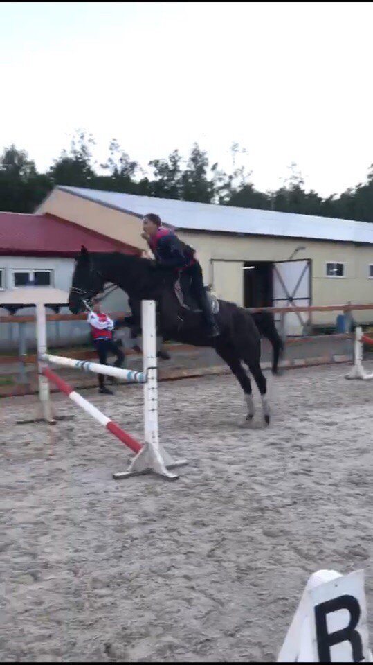Лошадь всегда была в одних руках. Адекватная, общительная, подойдет как для спортсмена, желающего развиваться, так и для начинающего всадника. Все вет процедуры, погрузка, ковка- без проблем.
