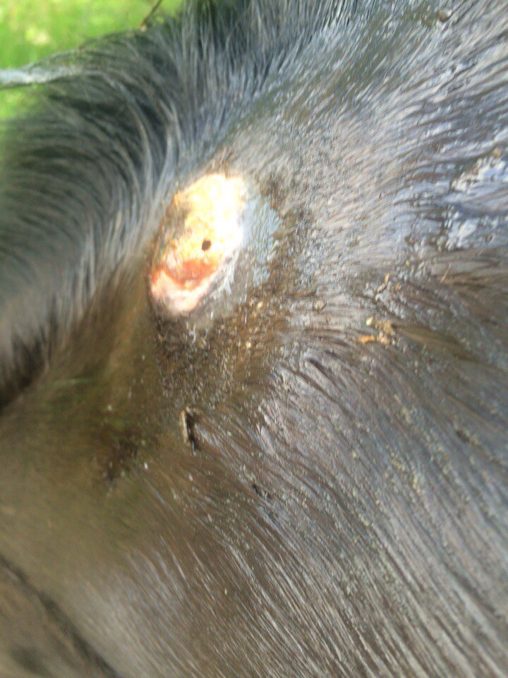 Всем доброго времени суток! У коня недели 4 назад на шее появилась очень маленькая и острая шишка, размером с комариный укус, жалоб не было. Через неделю вспухла до приличных размеров, не жаловался. Начала мазать траксирутином, через 2,5 недели стала меньше в диаметре, но более выпуклой. Видимо накусала мушкара, начал чесать в леваде, попробовала помазать йодом, становиться чуть меньше и все. Со вчера начал реагировать, нажимаешь, уводит шею. Начала мазать ихтиолкой. У кого нибудь такое было, может быть? Конь у меня 9 лет, впервые с таким сталкиваюсь( буду очень благодарна.