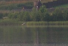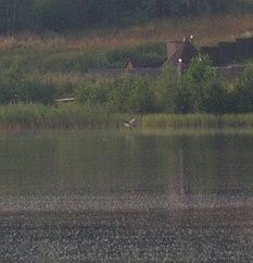 Вообще-то, если фотографию увеличить http://vk.com/photo9352662_335805102 то между лодкой и мостками на фоне травки можно разглядеть крылья в замахе.