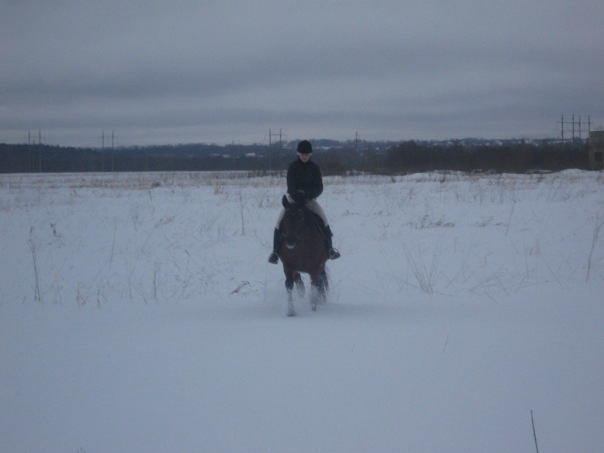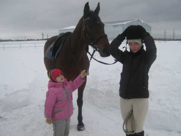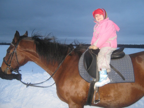 Занимались мы ("мы" - это я и лошадь) недолго, зато по снегу. Так что лошадка отработалась вполне достаточно. (Тем более мы её вроде как вводим в работу после очередных внеочередных каникул).