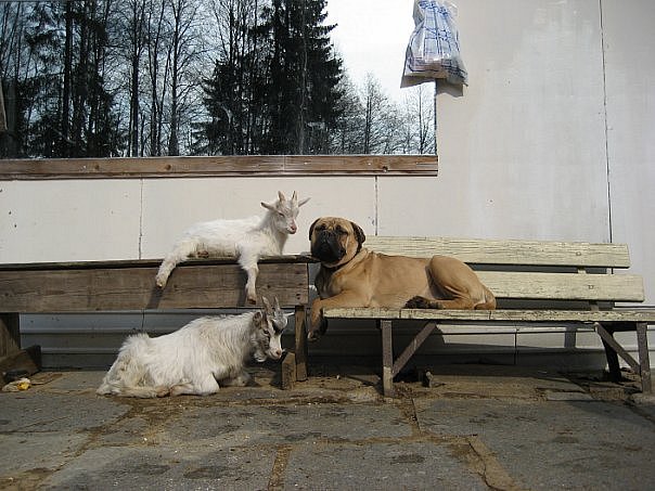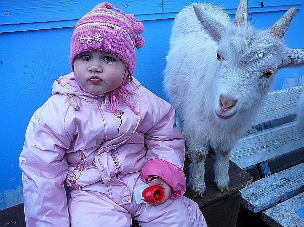 Жеребенок козу не обижает-она когда в охоту приходит заставляет его себя мусолить-потом чуть чище свиньи выглядит :twisted: