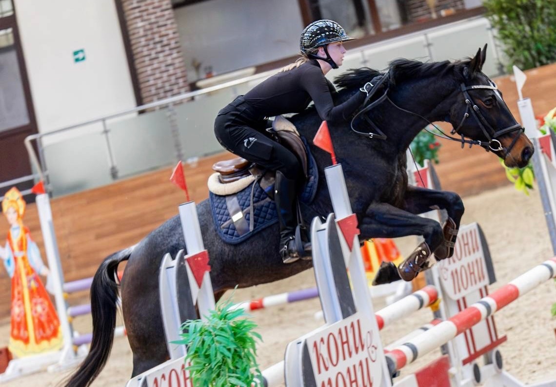 Старты - маршруты до 100 см. Дома - маршруты до 120 см (готовится выше); знает боковые, осаживания. Безумно удобная и простая в управлении. Прыгает из любых положений, прощает все ошибки. Ходит в поля. Абсолютно безопасная.