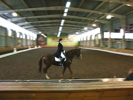 Помня рассказы о том, что судьи особо не обращают внимание на здорование всадников и не понятно становится что делать и когда, я влетела в манеж и затормозив перед Людмилой Рюриковной (первым судьей) громко и радостно прокричала: «Здравствуйте!!» Она недоуменно вылезла из капюшона и подняла на меня глаза. «Ага!!! У нас получилось, Барсик!!!» Такой же финт я продела и с другими судьями и подъехав в точке Х увидела, что центральный судья встала. Ну, думаю, делаааа….. ;))) и посеменили с Барсиком. Сделали два вольта (по схеме)….еду на центрального судью и думаю…а что же дальше? Прибавку вроде уже делала, налево ехать бессмысленно, я только что оттуда, а что тогда направе делать? ;))))и так выразительно ищу глазами Сергея, натыкаюсь на Людмилу Рюриковну и вопросительно поворачиваю направо. Вроде не удивилась, значит, думаю, туда! И тут меня осеняет – прибавки-то ДВЕ!!! И как мы припустили по стенке!!!! На букве В в серпантине, конь чего-то не захотел попу на стенку ставить…Получили от Русиной!!! Остальные не заметили…Остановка…замерли…я тихонечко выдохнула и почапали типа прибавка на шагу ;))) Пируэты получились хорошие, двое судей поставили 7, а самая дальняя 5 с минусом ????? Ну видимо ей было плохо видна наша гениальность))))) В галоп поднялись легко, сделали все вольты и прибавки. К моей радости получился качественный переход с прибавленного галопа на шаг и даже вольт почти 10 метров и вот когда конец был так близок….на простой перемене ноги через шаг мы все размазали !!!!;((( Если бы я сработала жестче, Браслет все сделал бы как надо, но….я боялась, что он вообще менку сделает и крепко держала его рукой….Короче размазали….Потом на стенке кааааак прибавили!!!! Еле остановились потом. Когда замерли в прощальном поклоне, раздались аплодисменты. «Все-таки классно быть звездой» - решили мы с Барсом и чинно выползли из манежа прямо в руки Гали, Сергея и всей схлынувшей с трибун толпы наших почитателей.