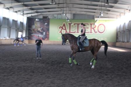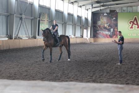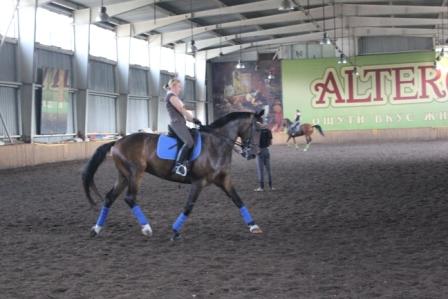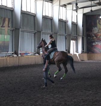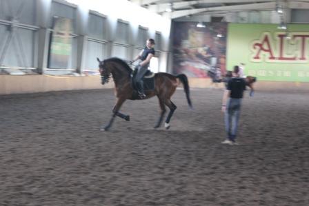 Первые Машкины слова были: «Человек-змея!». Они быстро разобрались друг с другом и конь пошел. Красииииивооо!!! Свободно так, выпендривался, конечно, с периодичностью, но у Машки не забалуешь. ))) К сожалению, мне не удалось досмотреть всю их тренировку, поскольку нужно было седлать Браслета, но из того, что я видела очень понравилось плечо и принимание на рыси. Хороший, качественный галоп! Я понимаю, опыт не пропьешь! Возможно и я когда-нить дорасту до такого же уровня…