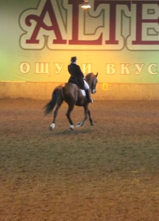 Мы доехали!!!! Ура!!!! Без сбоев, без закидваний и везде по буквам. Я кинулась хвалить коня, он кинулся к выходу. Тренера кинулись к нам с криками :"Шагом выходи!!!!" В общем в порыве всеобщего счастья мы не услышали ничего и со слезами радости вылетели прямо в руки Сергея и Ольги Николаевны.