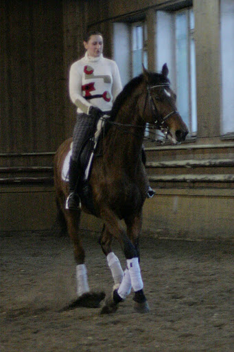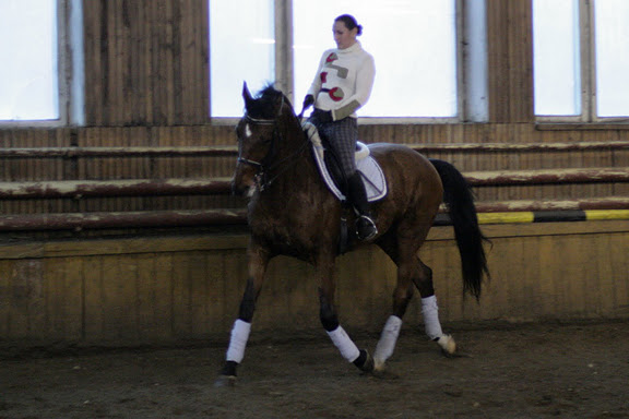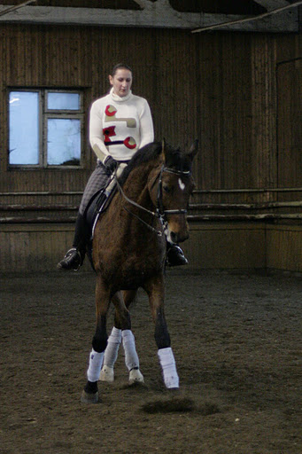 В субботу с О.Н. вернулись к истокам и подробно разбирали элементарные вещи, про которые давно забыли, а может просто и не обращали внимание. Например, прочувствовать на какую ногу лошдаь сделала переход с рыси на шаг или с галопа на шаг. В какой момент нужно поднять в галоп, где должны находиться ноги лошади...Казалось бы фигня, но насколько все становится легче, когда обращаешь на это внимание! Молодец она у меня, в смысле Ольга Николаевна!!!)))