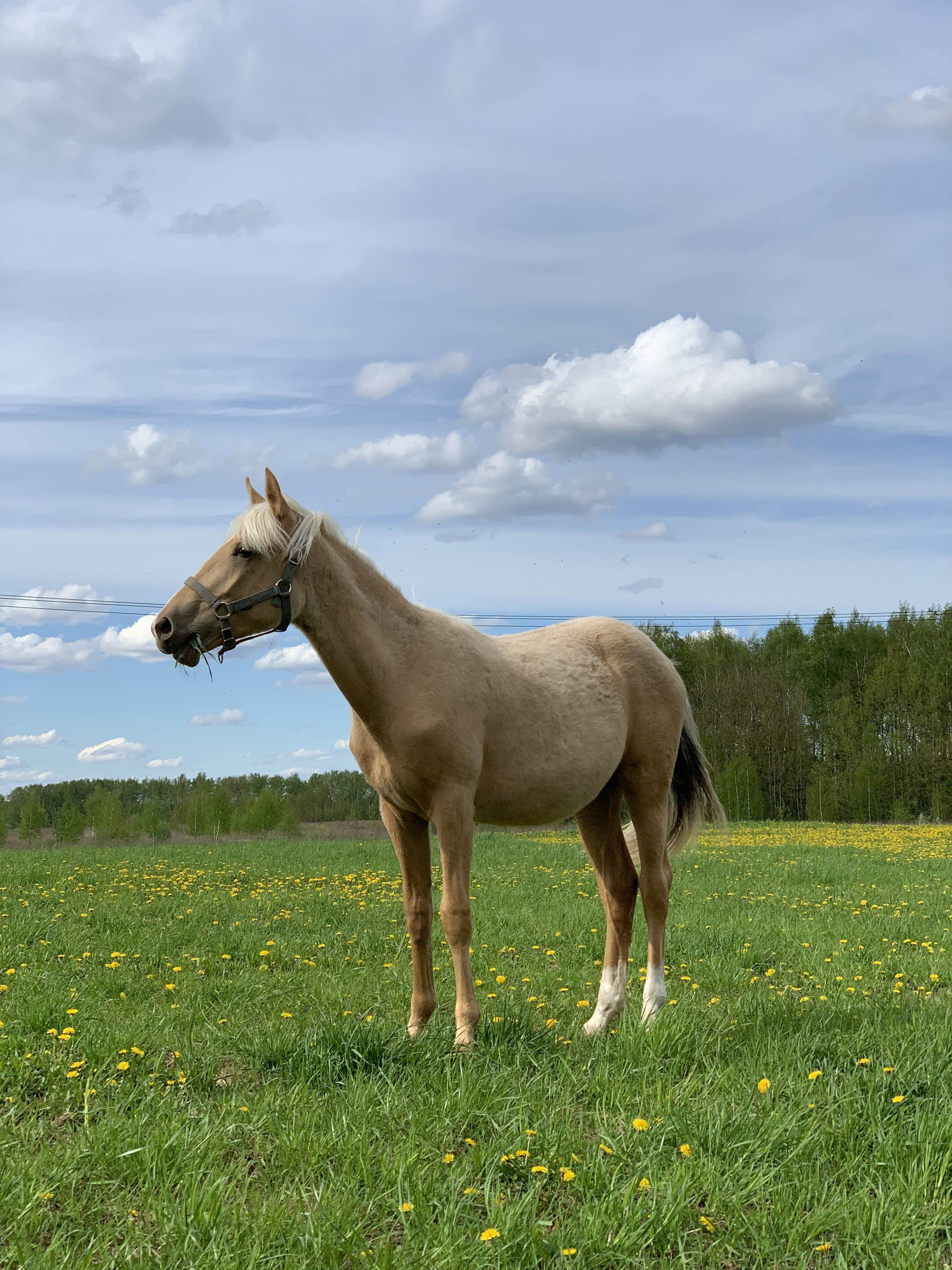 Очень красивая кобылка с ромбиком на носу и прекрасной соловой масти.