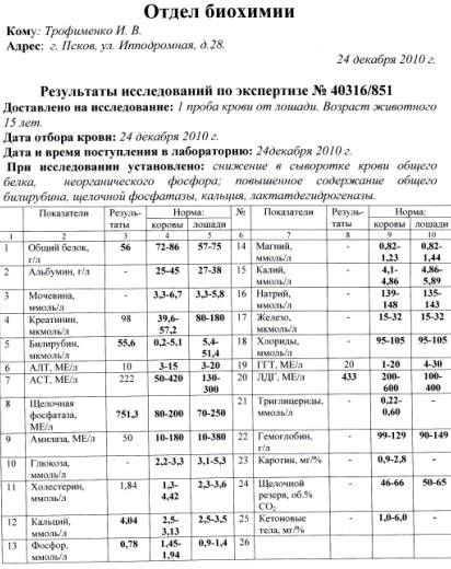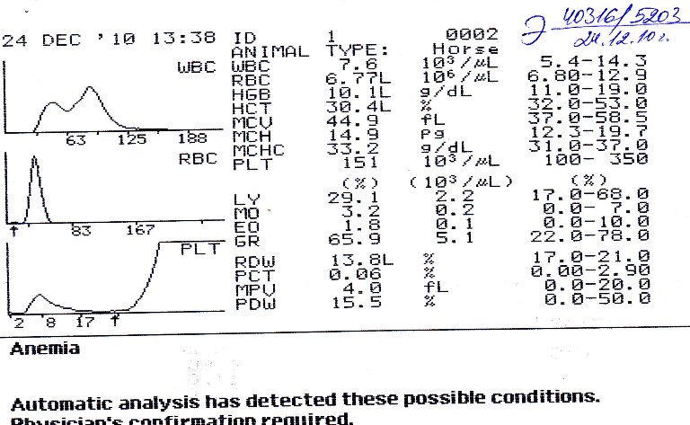 Самая информативная щелочная фосфотаза, но не скажу что она зашкаливает. Бывает и хуже. Она конечно в большей степени указывает на восполительный процесс в печени, чем на дегенеративно-восстановительный. Печень обычно долго держится и когда она "накрывается" - щелочная взлетает до небес. А лошадь резко перестала есть? После отъема или еще до отъема плохо ела? Признаки как наростали постепенно или резко? Лептоспироз проверяли (не поняла или просто не увидела информацию)? Каков цвет слизистых?
