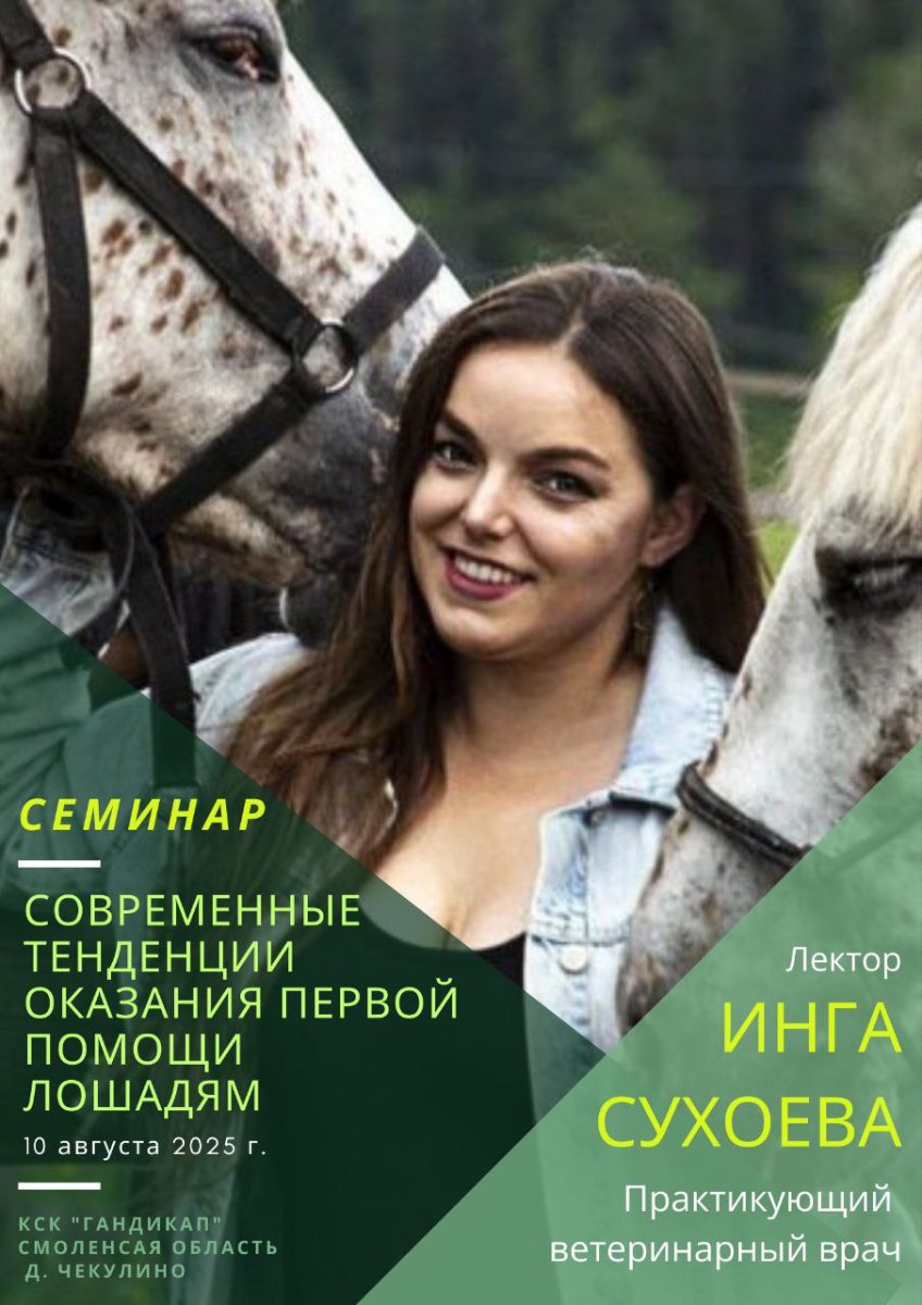 10.08.25 пройдёт семинар “Современные тенденции оказания первой помощи лошадям”, организованный КСК "Гандикап".