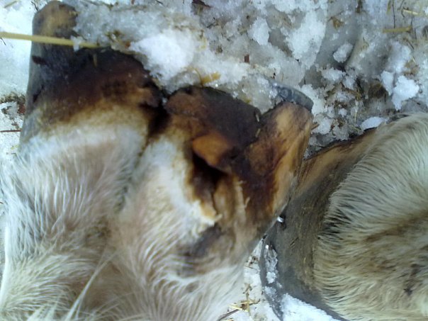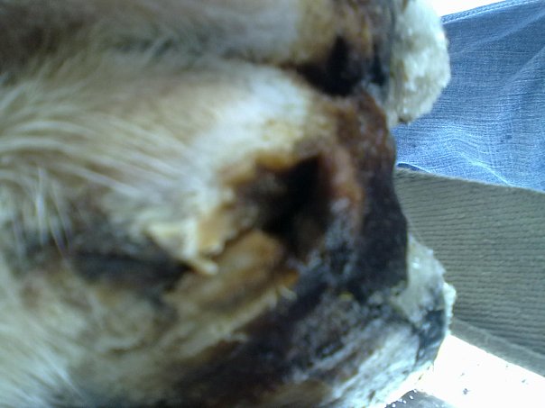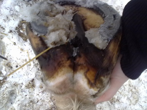 Хозяйка не могла потянуть несколько лошадей и продала ее, с договором что лошадь больше не пойдет по рукам. Увы. Кобыль держалась долго, когда у Юбера уже трескались копыта она была еще очень ничего, только стрелки гнили (ну это у всех там). Но граммотные девочки ей помогли - убита спина.