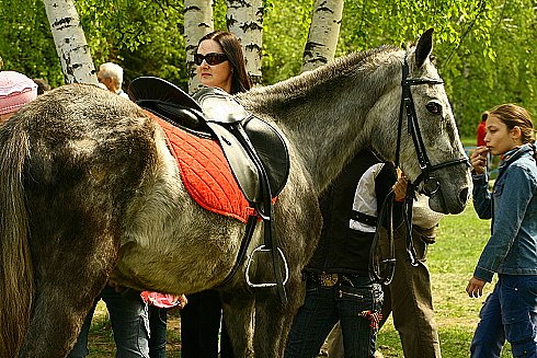 ездила на нем только хозяйка, а потом ушла с конюшни, оставила сдуру там седло, через неделю прийдя за вещами обнаружила, что его нет.. Дальше пошла лапша на уши..