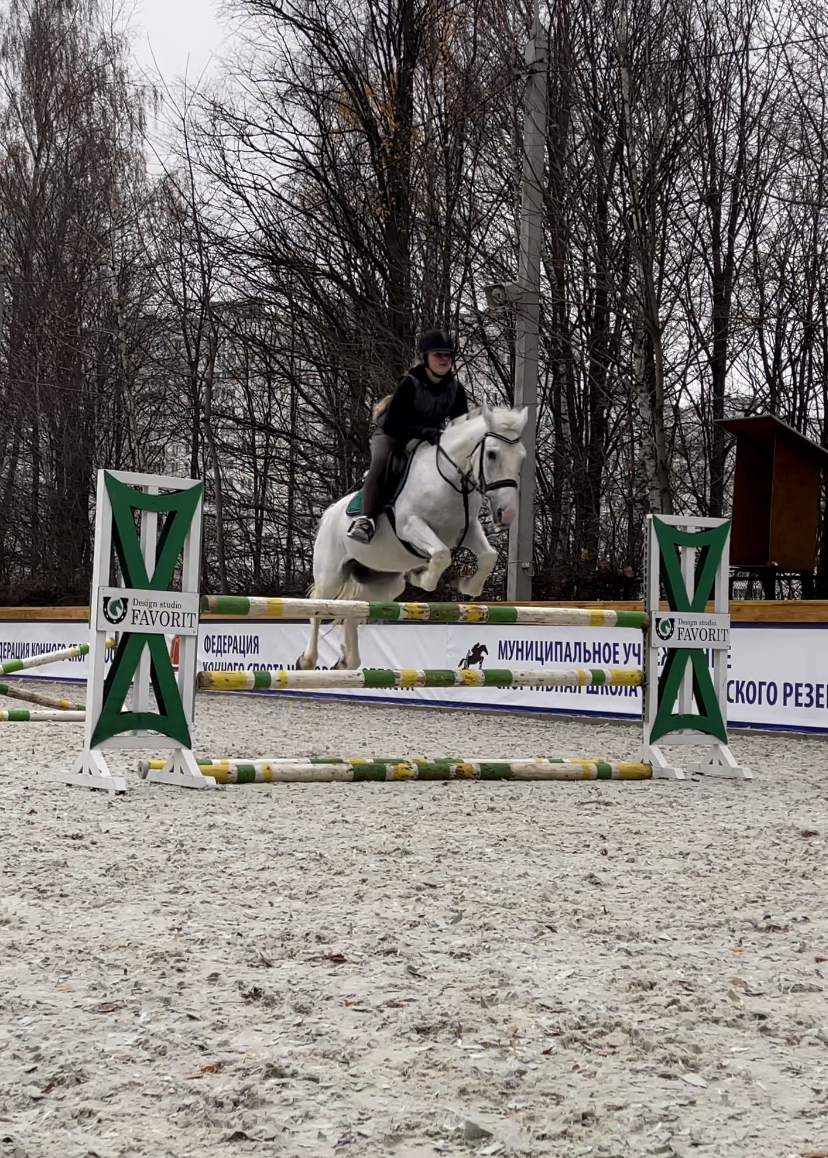 1. Кобыла 8 лет, тракененской породы, работается в конкурном направлении, прыгает маршруты до 100 см, одиночные выше)) Из выездки знает детские езды, учит элементы ППЮ (боковые)