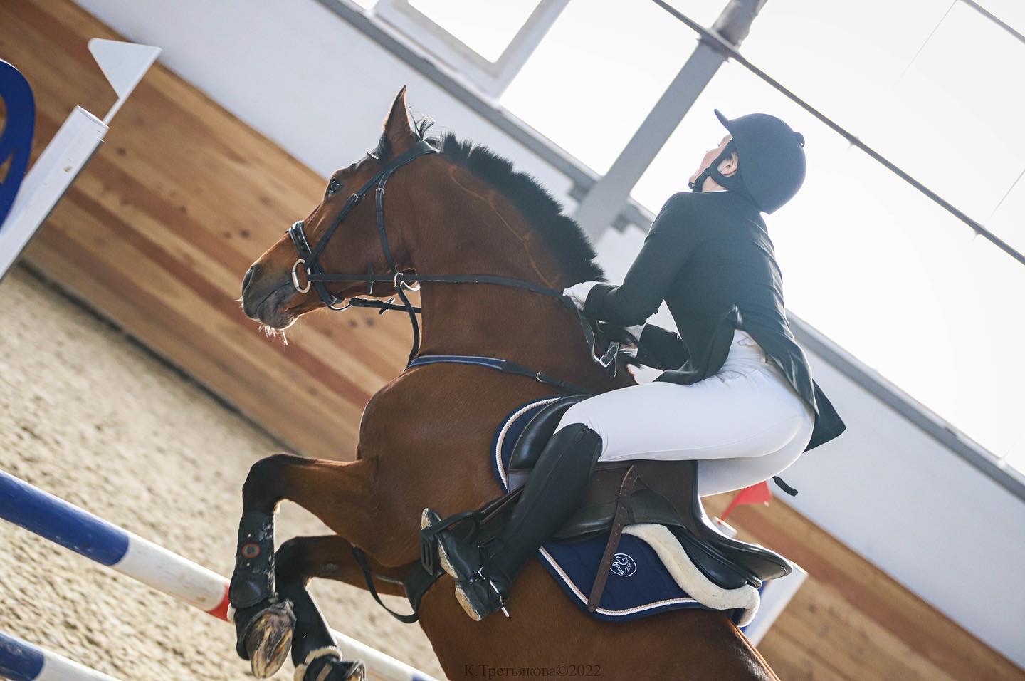 О лошади : кобыла недавно в конкурной работе, имеет хорошие данные и аллюры. На данный момент прыгает под верхом маршруты до 100см (под тренером) и маршруты до 80 и одиночные до 110см под ребенком 14 лет. Выступать начала в этом году, знакома с боевым полем.