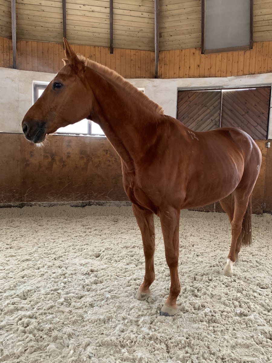 Выезжен по юниорским ездам и ездам Малого Приза, знает пассаж, сейчас нарабатывает пиаффе и менки в темп. Конкур до 100см, стартует уверенно, на барьеры не смотрит (не самовоз, просто катиться не получится), конь выступал, как в выездке так и в конкуре.