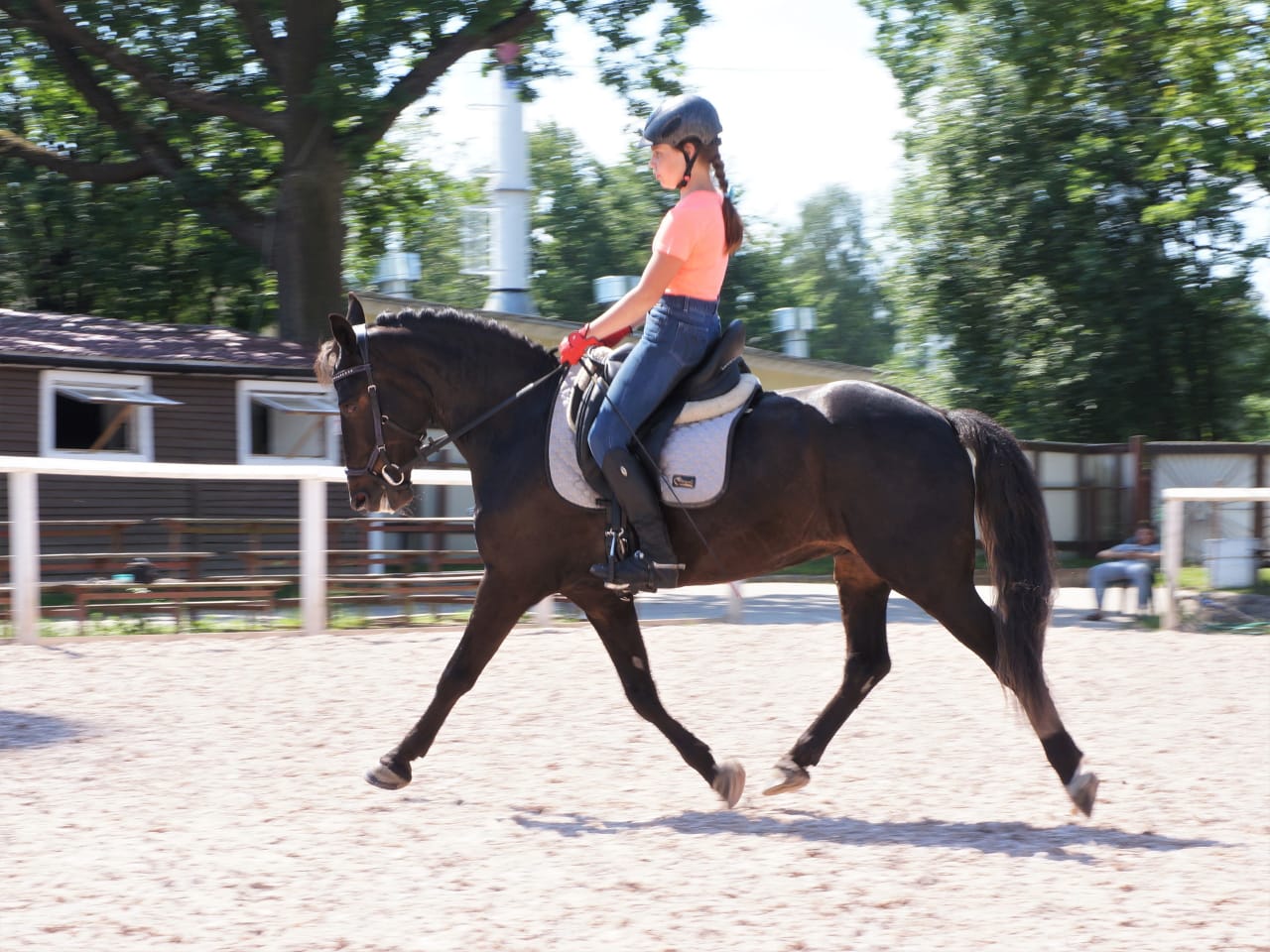 Большой стартовый опыт, как в выездке - все детские езды + пони езды, так и в конкуре до 90 см включительно, напрыган выше. Участник Всероссийских стартов.