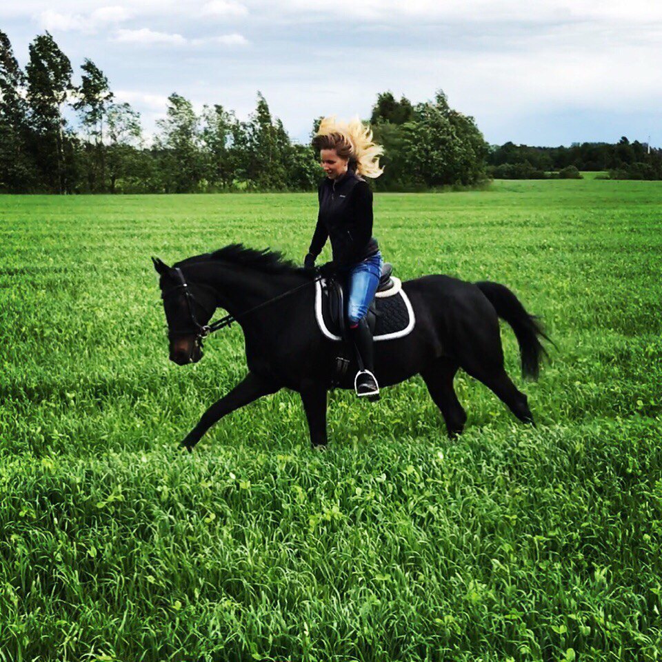Уровень хобби-класс, знает элементы манежной езды (уступки, принимание, осаживание, траверсы, плечо), напрыгана под верхом на связки 60-80 см, с удовольствием прыгает как под всадником, так и на свободе, надежная, достаточно активна в поле.