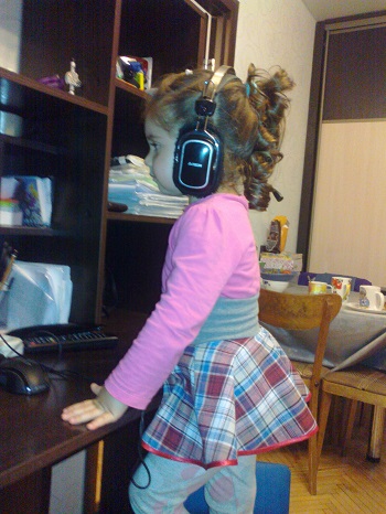 Был у них в саду праздник осени. Приходила тетя Осень вся в оранжевых листиках. Детки пели и плясали с ней. И вот Дашка мне показывала праздник, и одновременно повторяла песни и пляски.
