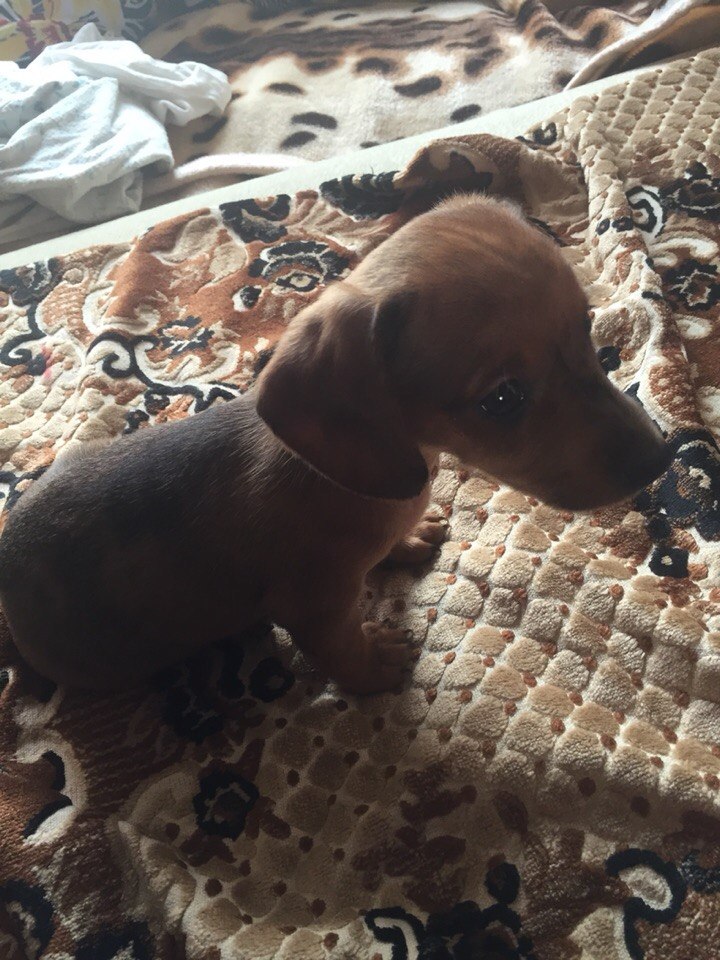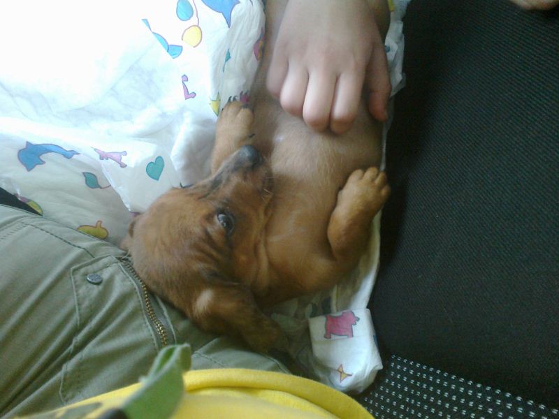 Я долго все ''взвешивала''. Как опытный в прошлом таксовод:) я понимала, что взять взрослую таксу МНЕ можно, а вот дочка со взрослой не справится! Они все характерные, тем более ''отказники''. Брать из приюта дворика - можно, но родители против, а вот к таксам у всех слабость. Так что вот еще с утра и не думала, а вечером вдруг подхватились и поехали!!:D