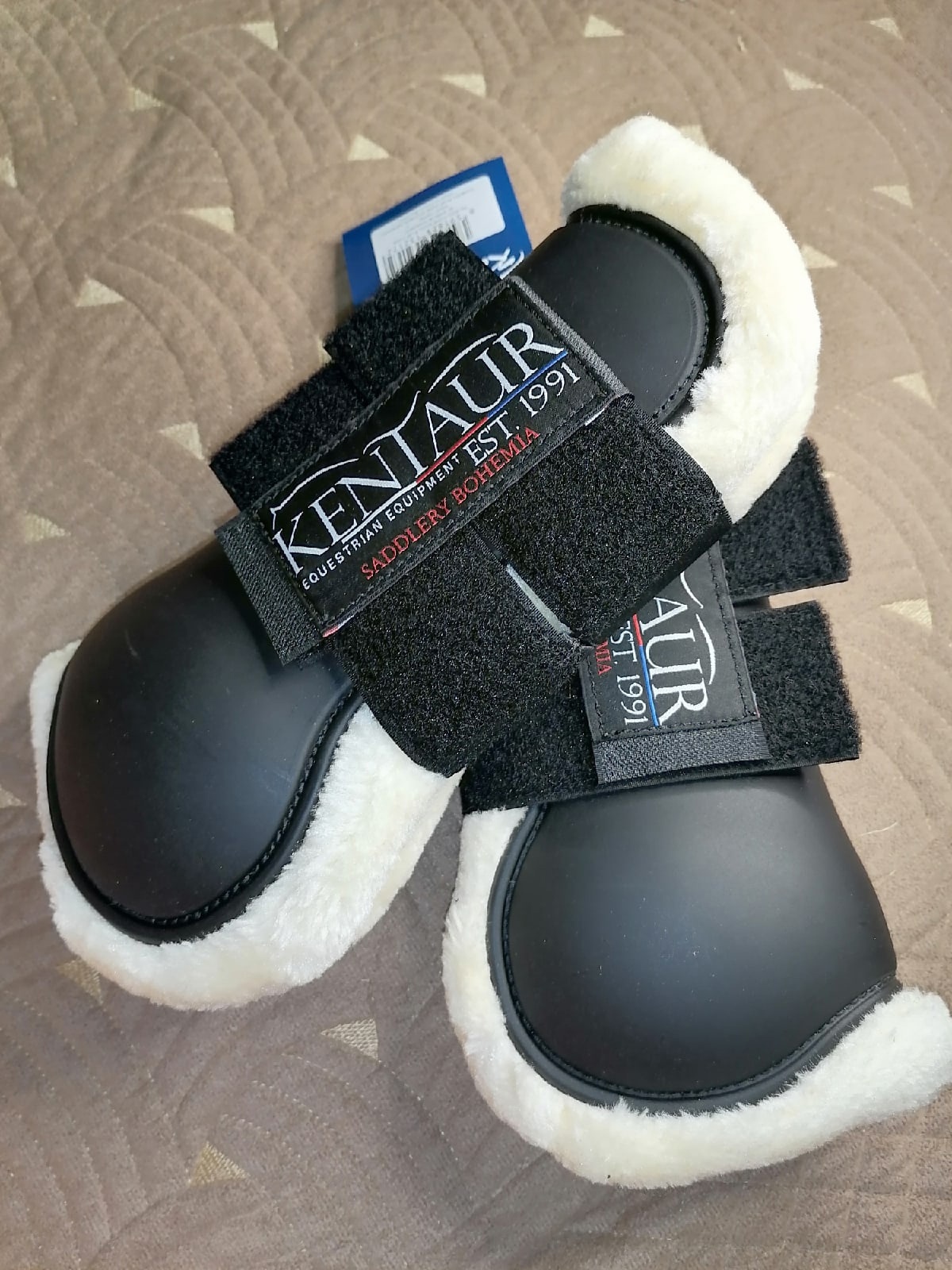5. Состояние: новые. Ногавки передние PROFI JUMP от Кentaur с искусственным мехом, на липучках. Размер фулл, черный цвет. Цена 3 500 руб за пару.