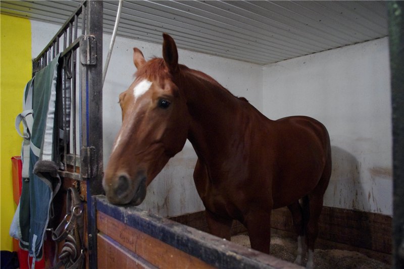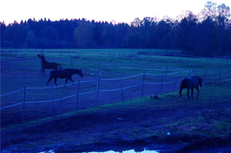 Сегодня кста страдалец прокатил меня с таким ветерком по полю.. ух.. Ничо сделать не могла. Ну меня собссно и не напрягает особо когда он скачет, главное чтоб не психовал. На удивление вел себя сегодня уравновешенно, без закидонов особых, ну пер конечно, ну круголями обходил страсти, но как-то более менее все в одном настроении, без паники и истерии. Единственное, что первая рысь вобще не удалась, моментально превратившись в галопище, ну я решила уж пусть проветрит мозг раз хочет так, зато потом даже шагом на брошеном поводу!!! о чудо! шел себе разглядывая сгущающуюся темень вокруг. Потом вполне справно вприпрыжку хромая откатал рысь, ну на галоп само собой раздухарился и еще побегал на первой космической, но уже хоть не так рьяно как вначале. А под конец так вобще уступил всему чему можно и даже дал сесть в седло спокойно. Вобщем уставшие, но довольные они вернулись домой, как говорится. Что нехарактерно, в последнее время потеет поясница и задница у него, и потом еще отпотевает по новой, под седлом сухой почти. Дышит хорошо, сегодня после гонок своих откашлялся немного и все. Восстанавливается моментально. После нагрузки нога не хрустит и вообще идет ровней, или мне уже кажется просто, привыкла к его припрыжке.