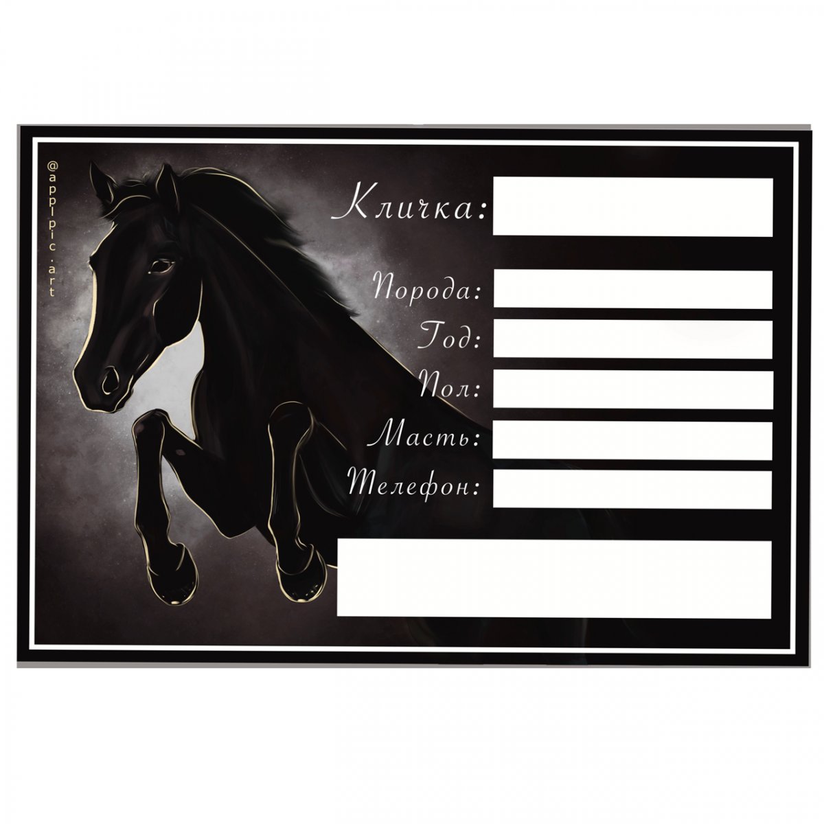 Табличка очень просто крепится и на ней можно увидеть всю информацию о лошади.