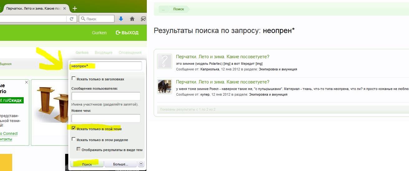 Расскажу как искала. Я открыла каждую тему , в названии которой было слово перчатк* и произвела в каждой поиск по слову неопрен*. Это очень быстро. Вот так:
