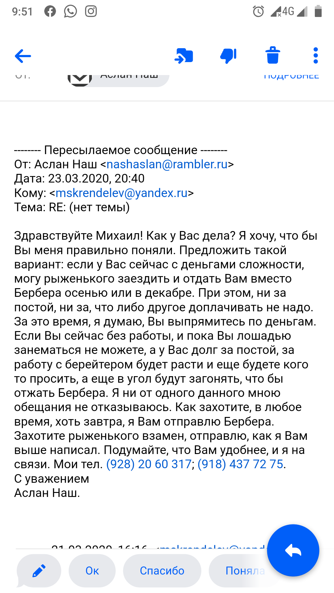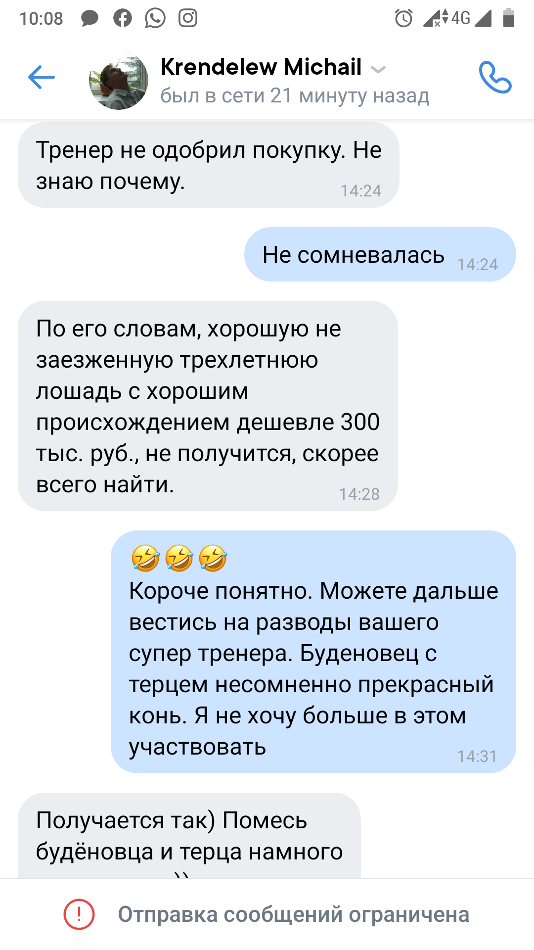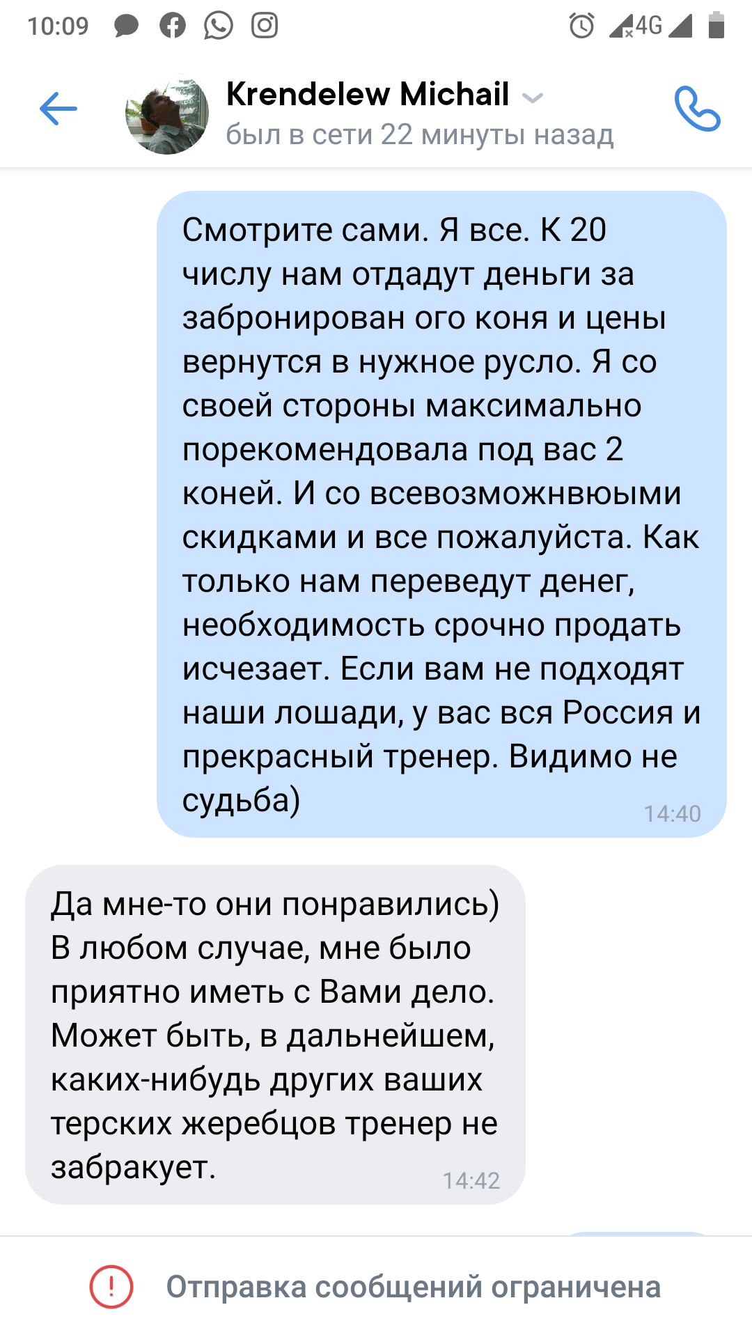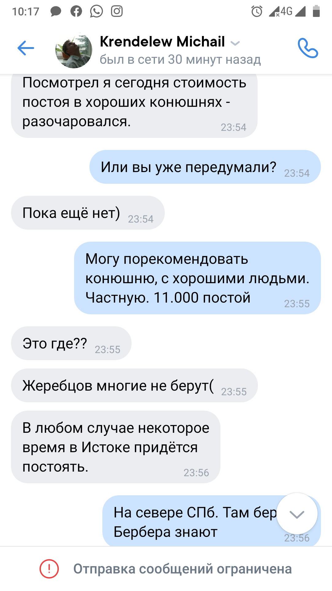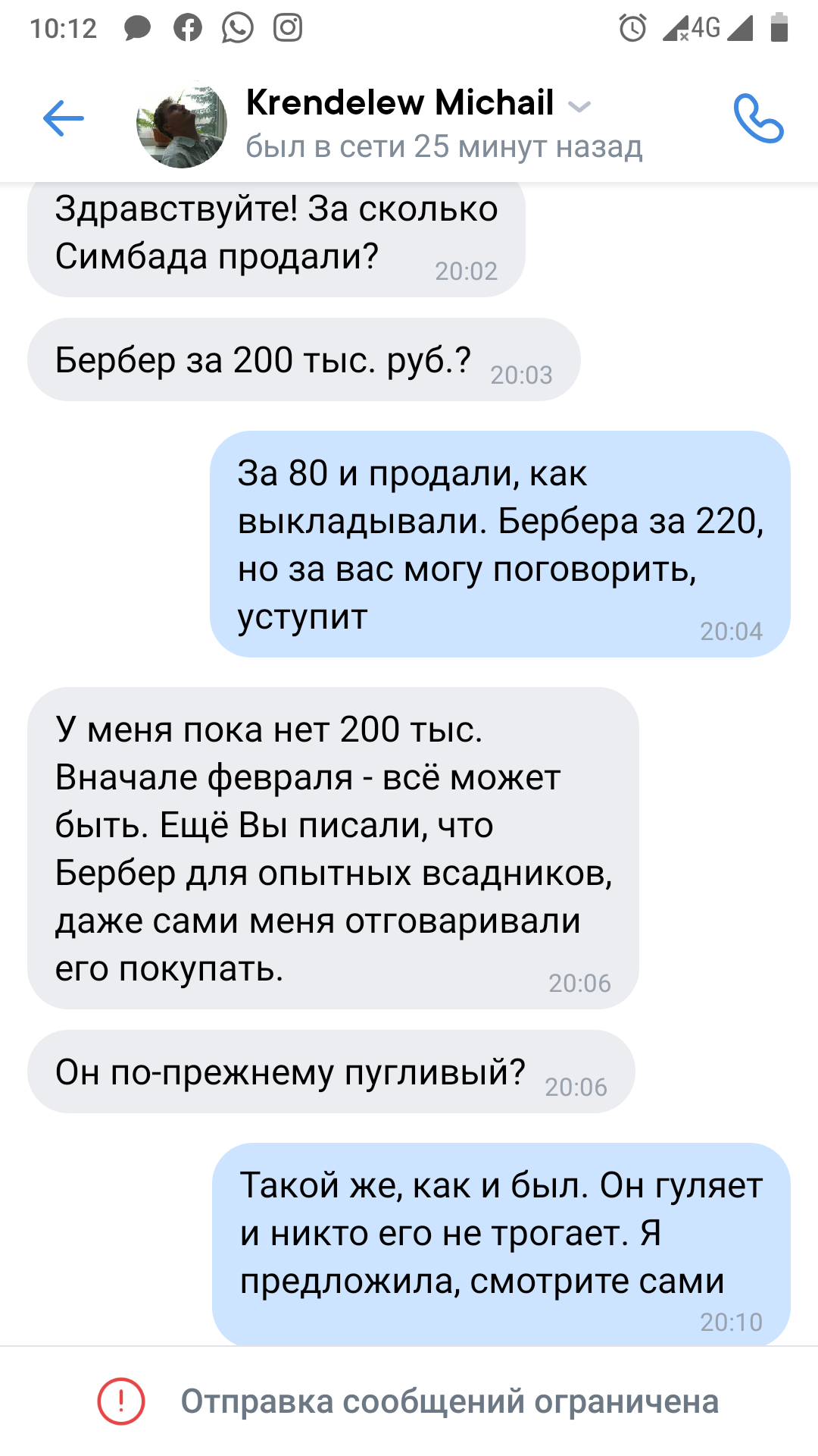 Все переговоры вёл Аслан, сам ездел для меня ,сам смотрел, сам вёл диалог с хозяином. Мне отправлял фото и видеоотчёты, потом решали...как быть. К сожалению, а может и к счастью с кобылой не сложилось. На стандартные вопросы о документах и прививках ответа не было, прозвучало только хочешь- забирай, нам все равно! Не хочу...