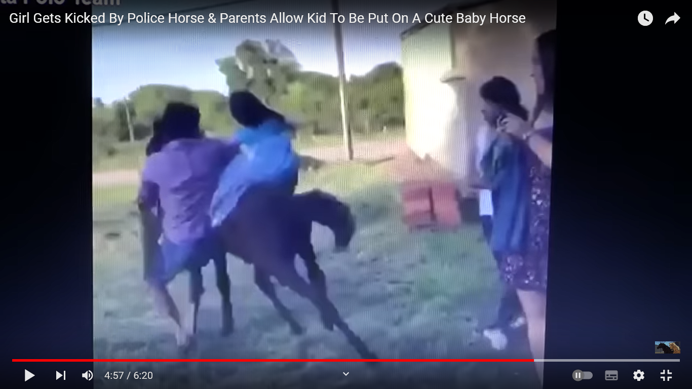 А видела... уже больше 15ти лет прошло, а помню как сейчас... Стоим с конем, кованный, на шипах. проходит глава семейства и уверенно хлопает по крупу коня, проходят(точнее они бегали потом и норовили под ноги попасть) мелкие его дети и, видя его пример, также пытаются поступать и с конем и пони.