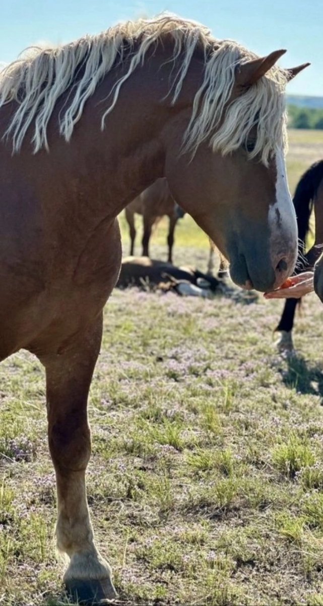 Базово заезжен, верхом не использовался. Прекрасно табунится. Крыл, дает отличных жеребят. Любимец публики, привлекает взгляды. Добрый и контактный.