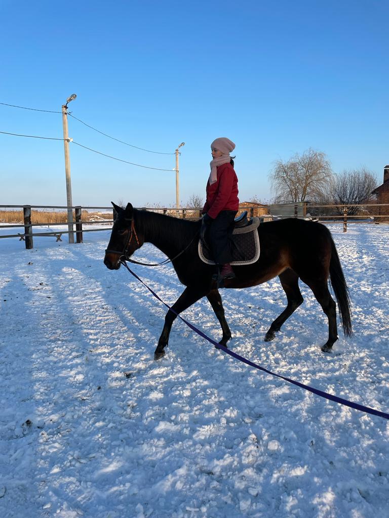 - Работает под верхом , абсолютно адекватна, может справиться даже ребёнок.Не пуглива. Гуляет весь световой день, летом на пастбище.