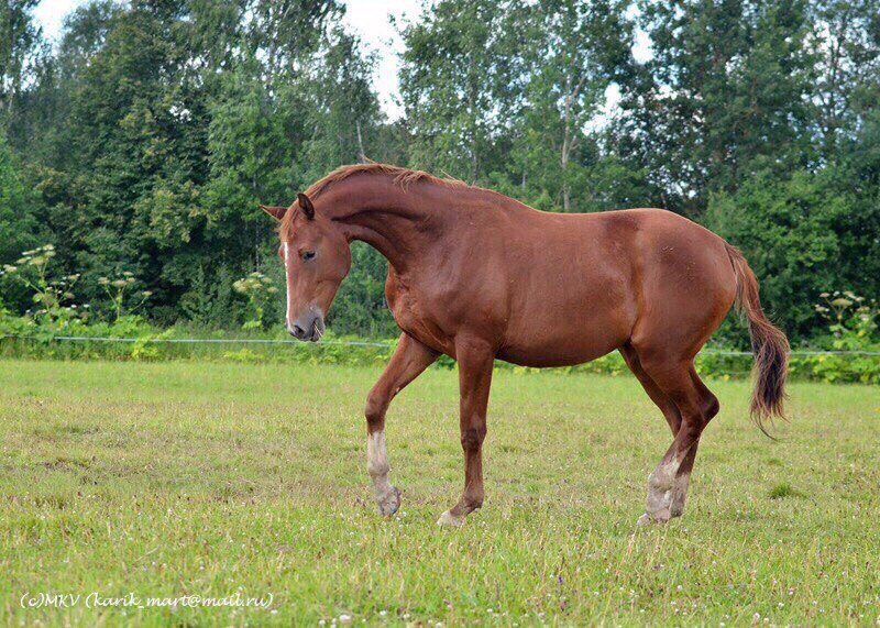 Сильная, развитая молодая лошадь. Проходит начальный тренинг. Заемечательная девочка без вредных привычек. Ориентирована на человека. Перспектива в любые направления.