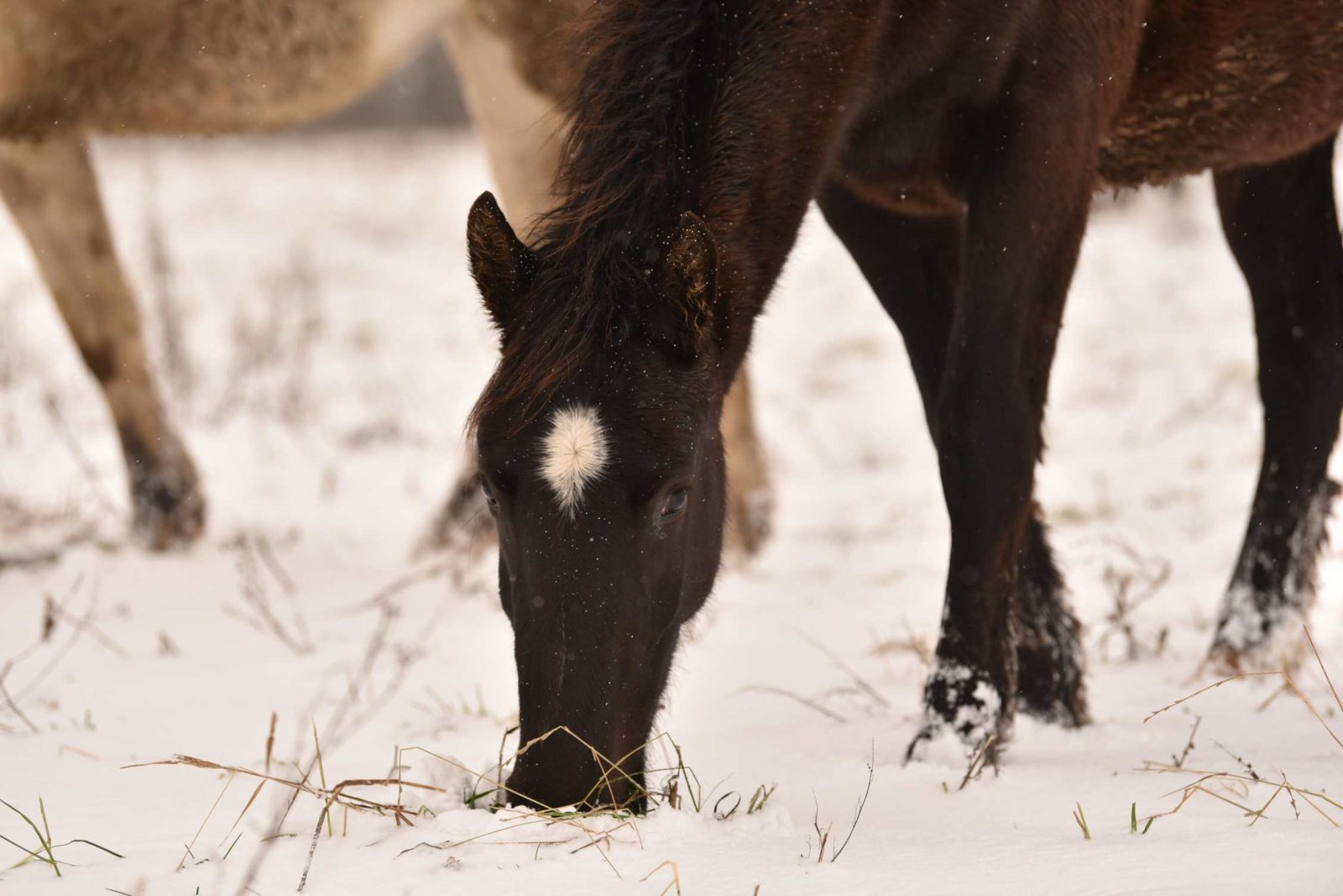 Обе кобылки генетически чубарые! У вороной пятнистая кожа и полосатые копыта, с возрастом скорее всего появятся "снежные хлопья" по всему корпусу, как это произошло у ее старших сестер.