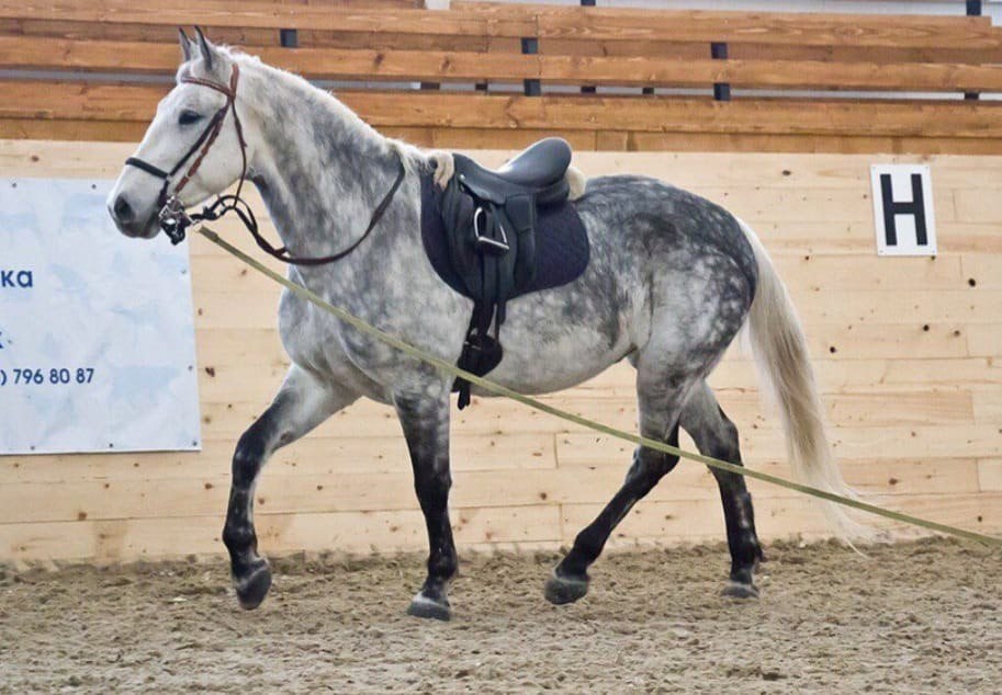 Конкур под любителем до 100, знает кроссовые барьеры. Выездка уровень любители, заезжен в упряжь. Конь очень хорошо выезженный.