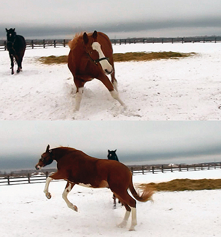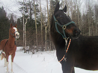 Кстати, после боковых решили еще немного порысить и удивительное дело – держать себя в средней рамке коню было значительнее легче. Я даже не успела его попросить, а он уже чесал правильным рысом с опушенной головой и слегка приподнятой шеей, даже попытался толкаться задними ногами, но коварный лед под снегом пресек эту идею в зародыше.