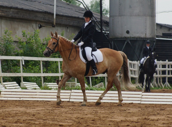 А после старта мы пошли в крытый манеж. Вначале подсела Таня, посмотрела, как конь – он опять двигался, кто б сомневался. А потом опять села я и поработала немного на рыси: просто двигала вниз и вперед, и, что приятно, получалось. И после шага сделали еще галоп: подъем, галоп по всему манежу, на второй длинной стенке переход в рысь, потом сразу переход в шаг, перемена направления. Повторили несколько раз. И потом делали короткий галоп на вольту в обе стороны. Все получилось на удивление прилично. Переходы пока резковаты, но под конец тоже ничего. В общем, после всей этой эпопеи мой личный галоп, похоже, наконец устаканился, и с ним можно наконец начинать работать. Что не может не радовать, причем даже очень. Помогло и обсуждение, и еще что я в субботу подглядела на чужой тренировке - ошибки, очень похожие на меня, прямо как свое видео. Это помогло сегодня сесть на галопе нормально.