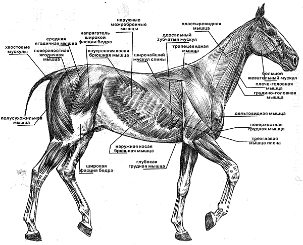 Если кто-то реально не увидел грудной мышцы у лошади, я могу выделить красным. Если кто-то не представляет, как глубоко в пузо она уходит, могу нарисовать.