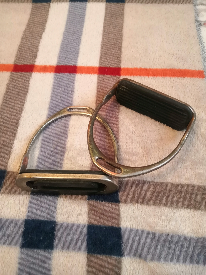 1. Стремена 12см с чёрными резинками, местами потемнел металл, но не критично-1000р (вместе с путлищами за 1200)