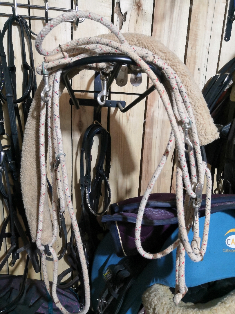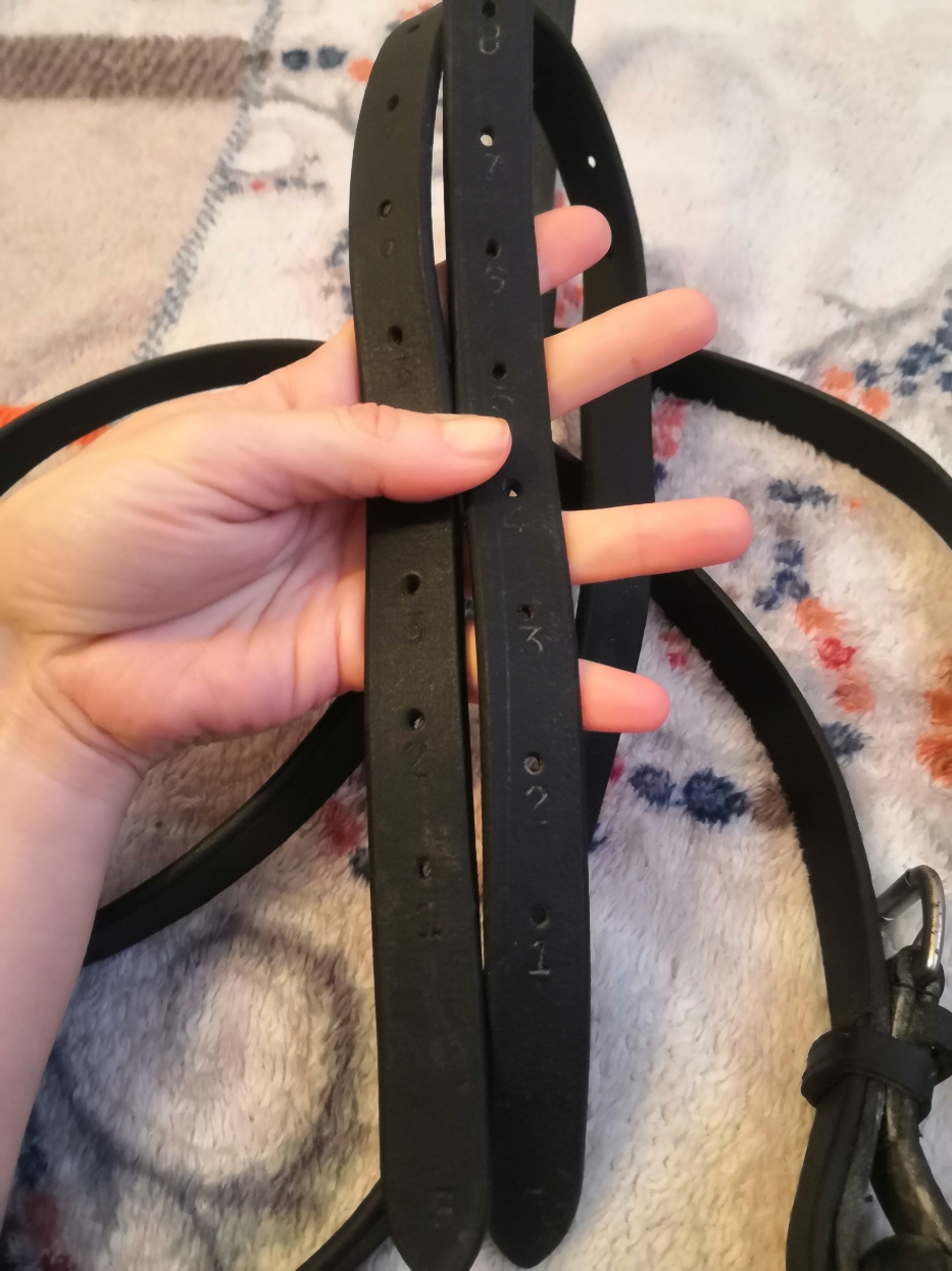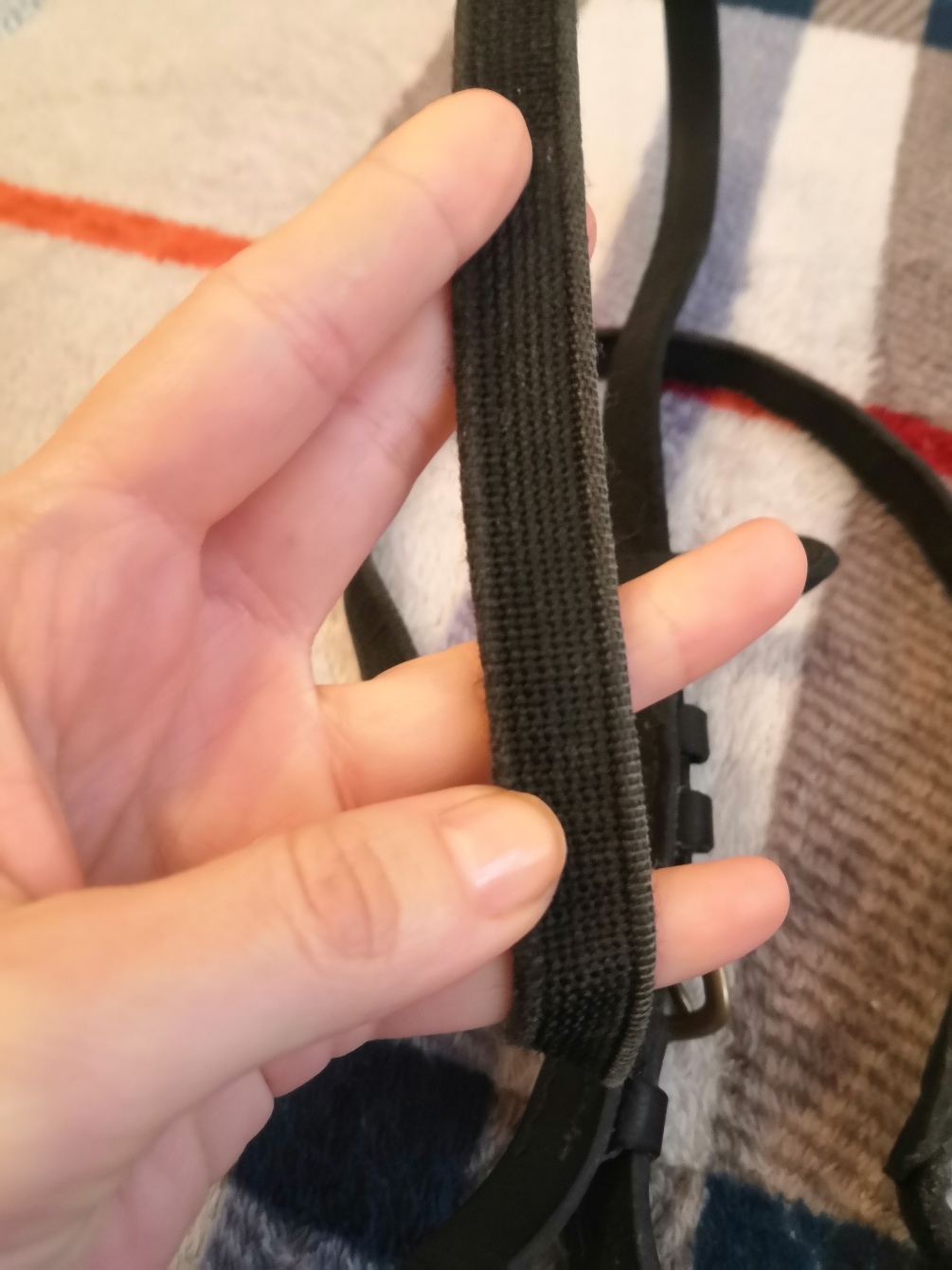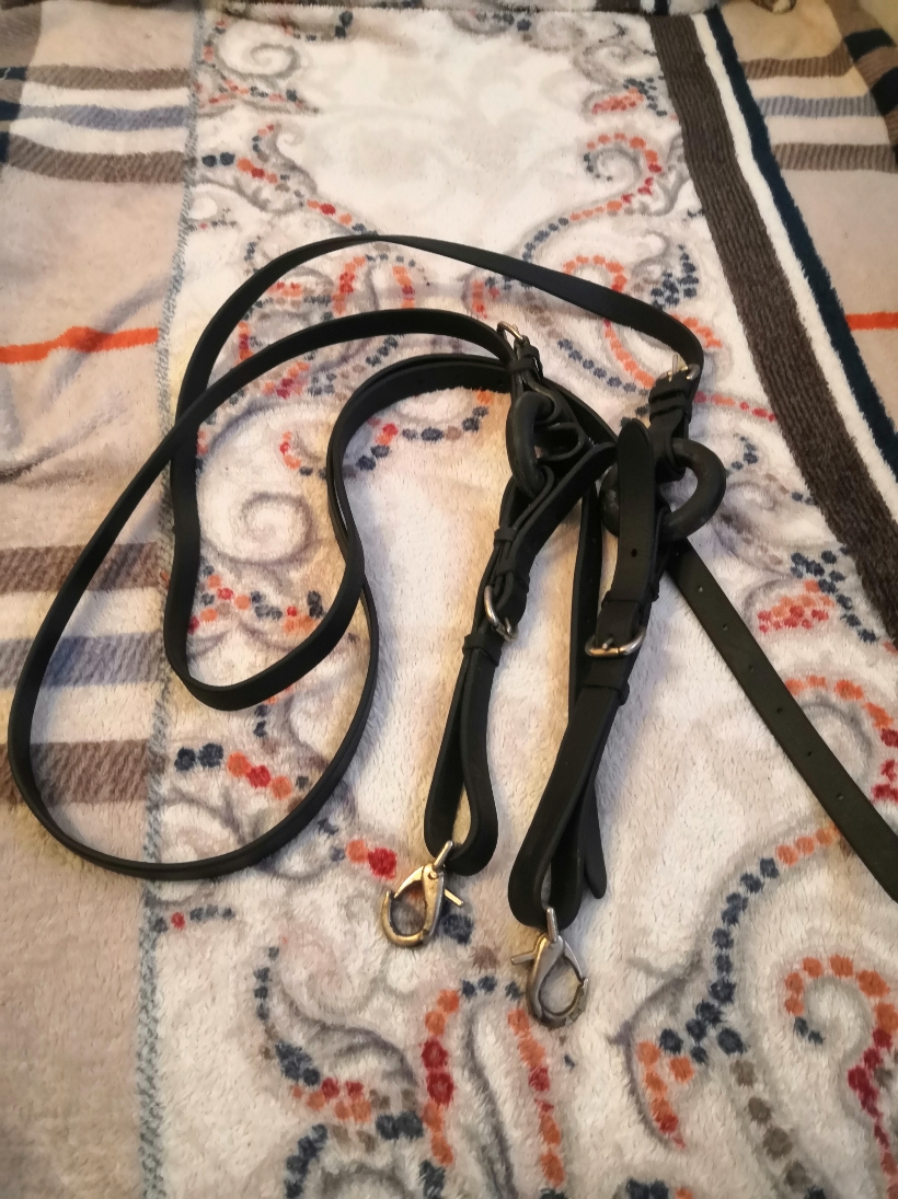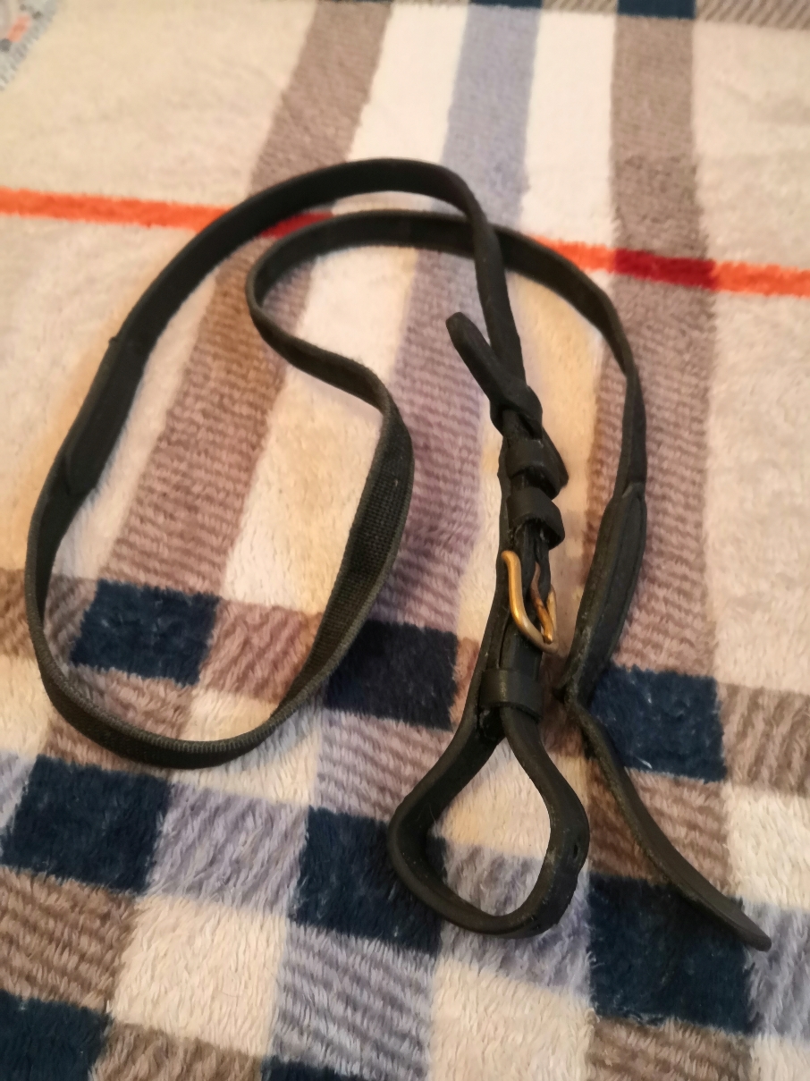 4. Половинка прорезиненого повода. Состояние на 5, фурнитура жёлтого цвета. - 200р