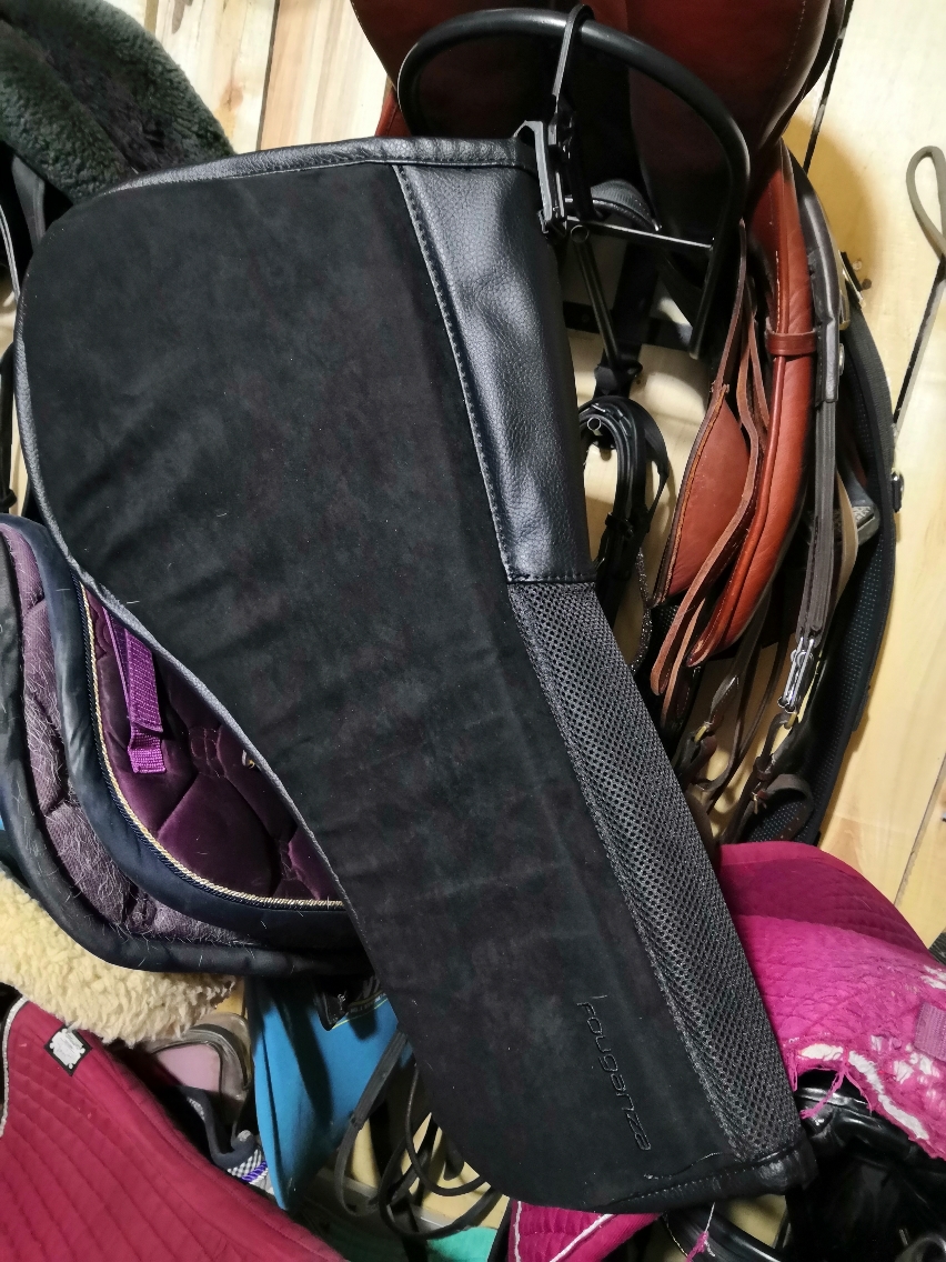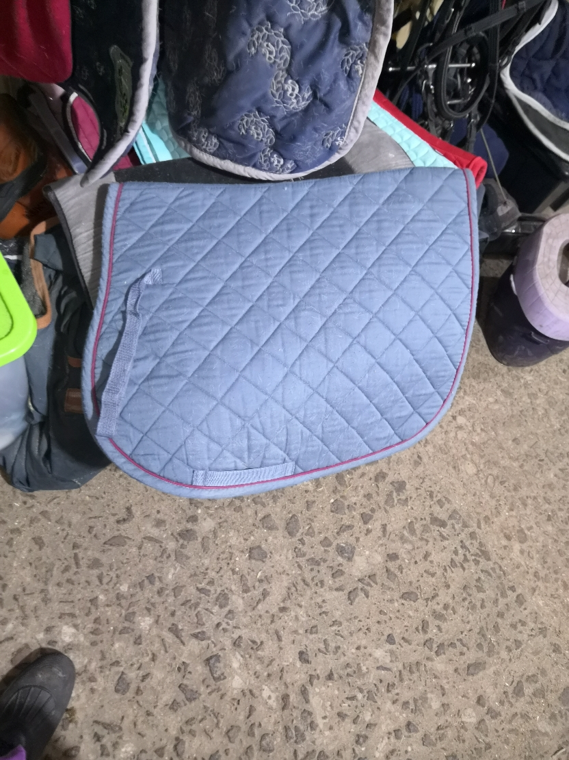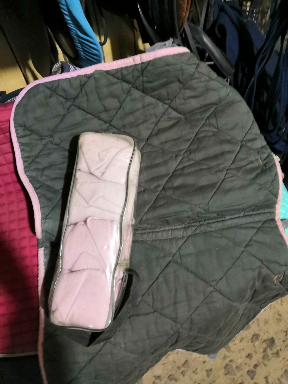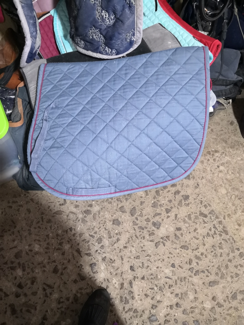 11. Попону темно-синюю флиску б/у на 155 (на плече небольшой шовчик) . С подпузными и бедренными ремнями-2000р
