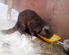 Возраст кота 4-5 лет. Кушает кашу (геркулесовую) с тушенкой, кошачьим кормом. Подкармливаем его 2 - 3 раза в сутки.